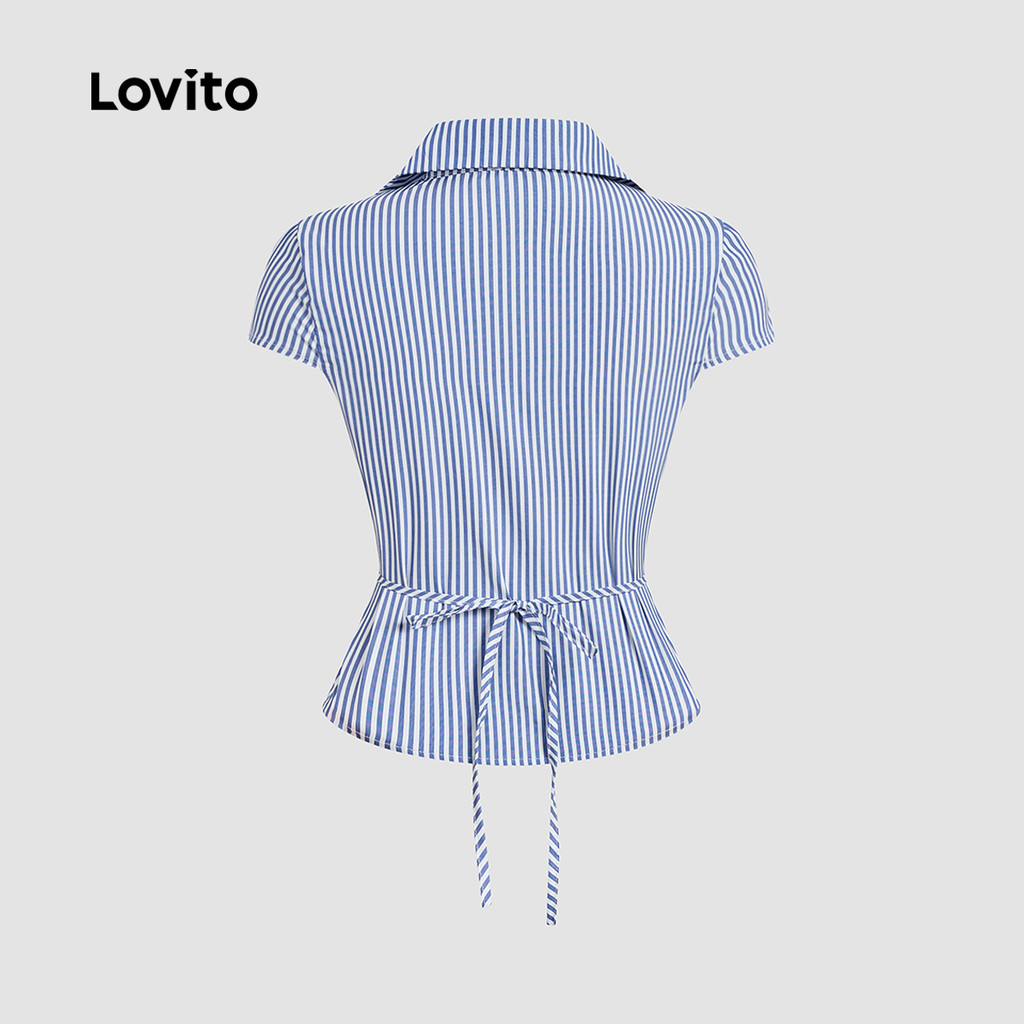 Lovito Blusa Casual com Botões Estrutura Linha Azul Blusa para Mulheres L171AD012