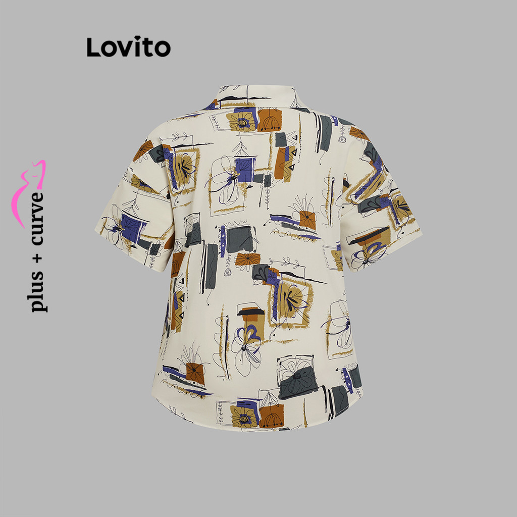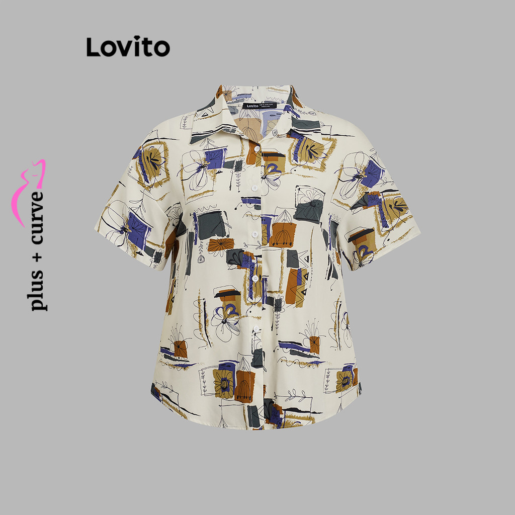 Lovito Blusa Plus Size Feminina Estampada à Mão para Verão e Primavera LBL20297\6