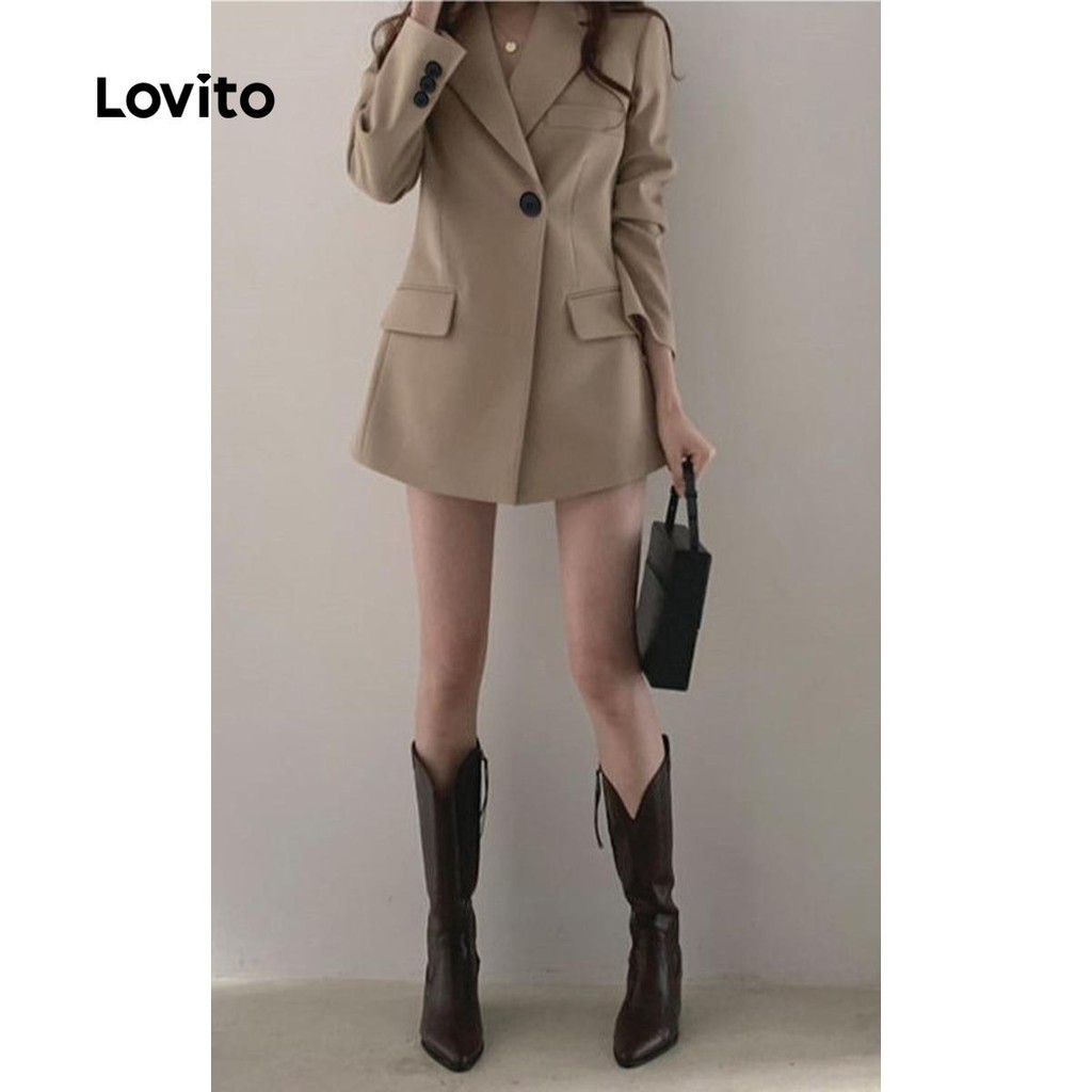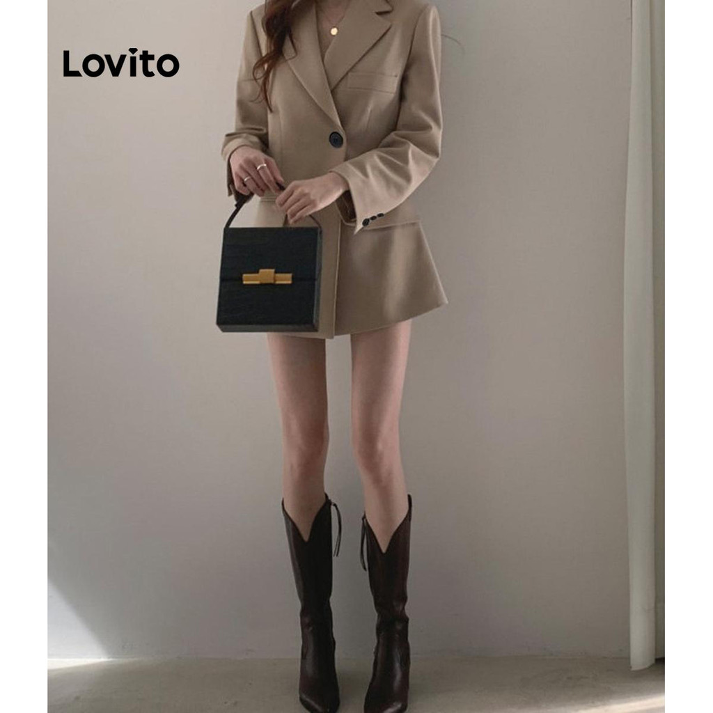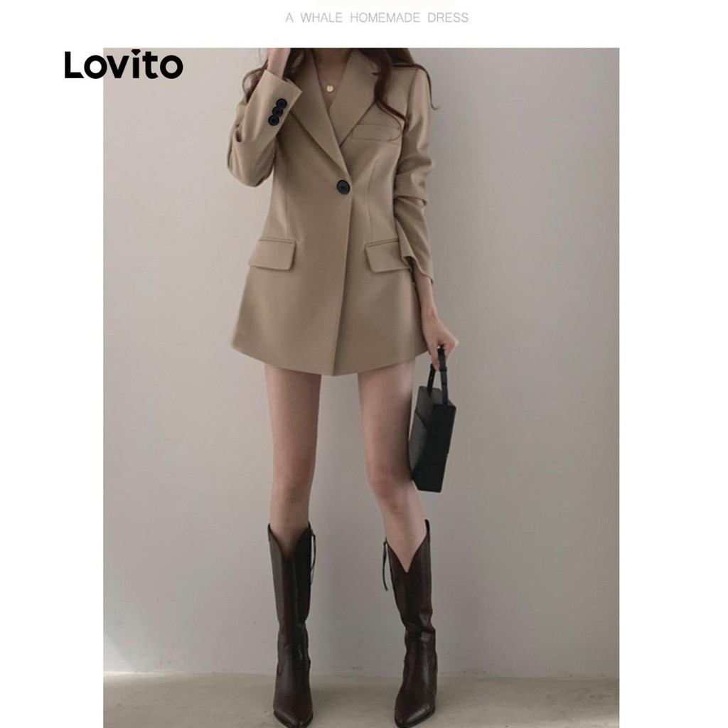 Lovito x Glenda Blazer Elegante Com Botões Lisos, Outono E Inverno, Para Mulheres LNL101618