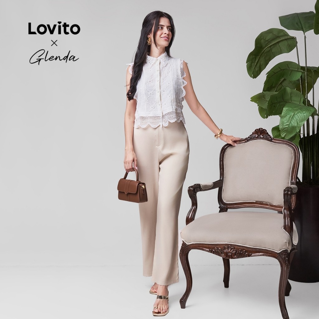 Lovito x Glenda Calça Casual Calça Bolso Simples Para Mulheres L67AD135 (Cáqui)