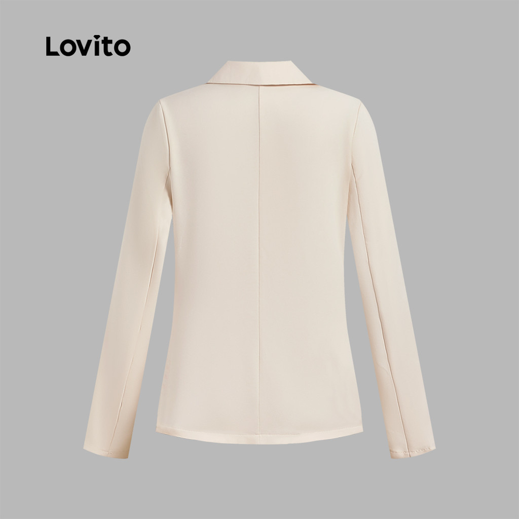 Lovito x Glenda Blazer Elegante E Simples Com Bolso Falso, Primavera/verão, Branco-sujo, Para Mulheres LNL103521