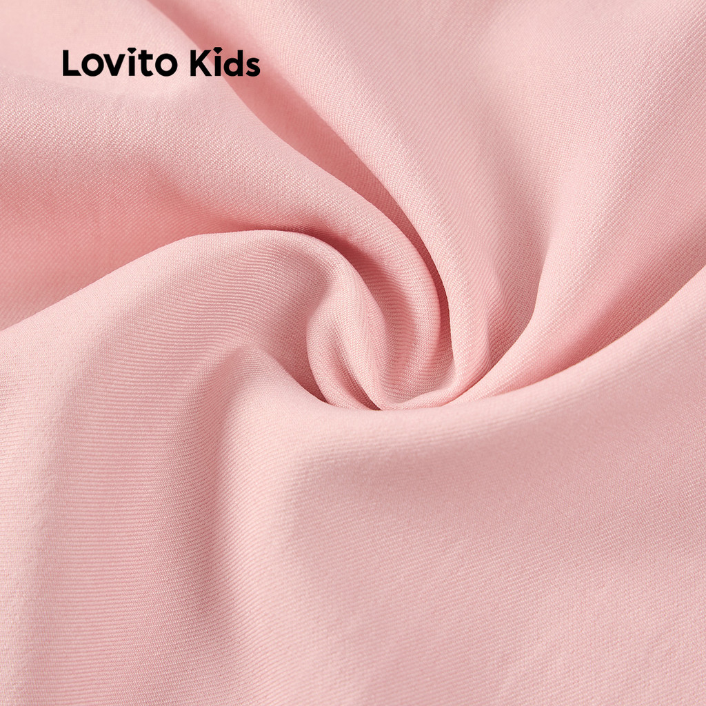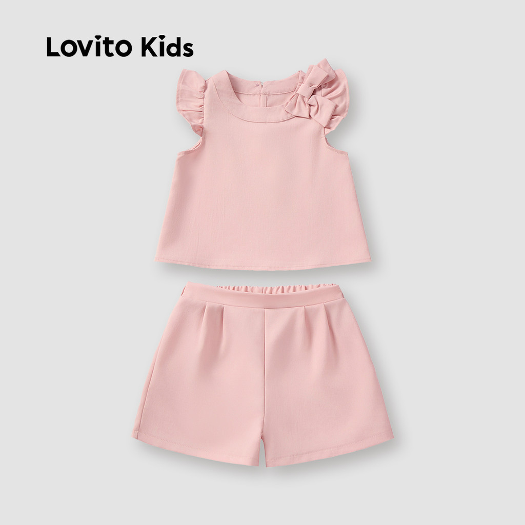 Lovito Kids Conjunto de Shorts Fofos com Laço Pregueado para Primavera/verão Conjunto de Shorts Rosa L162LD209