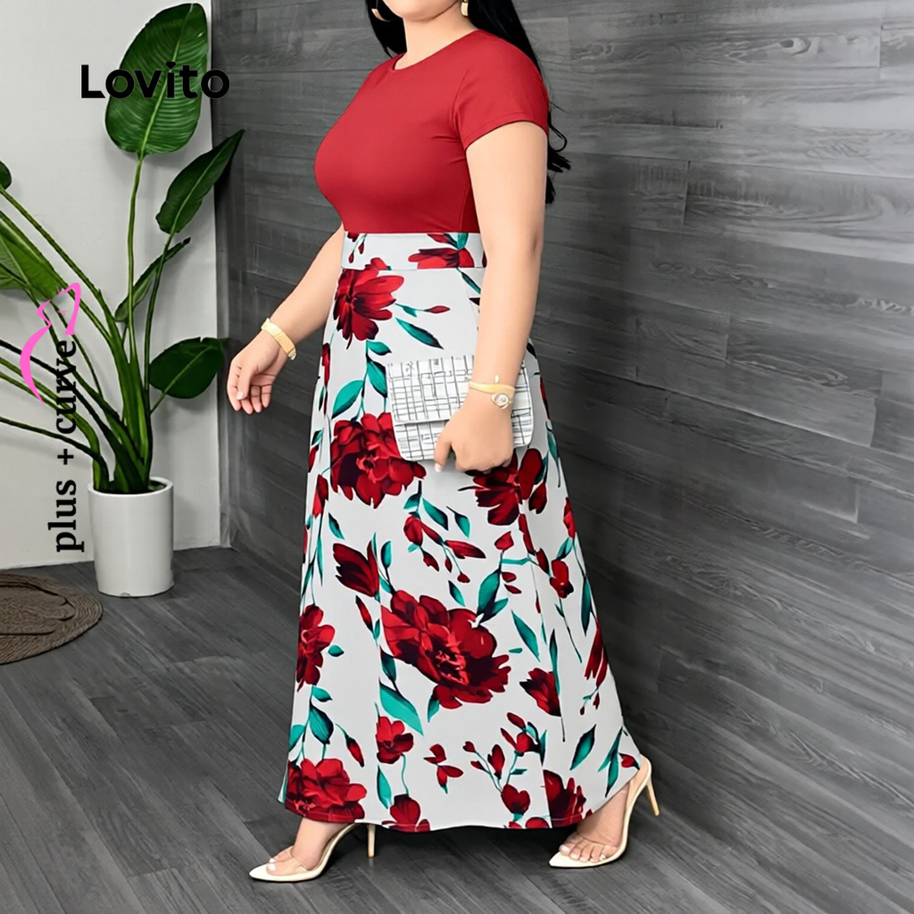 Lovito Vestido Boho Colorblock Primavera/verão Vermelho para Mulheres LNE130047