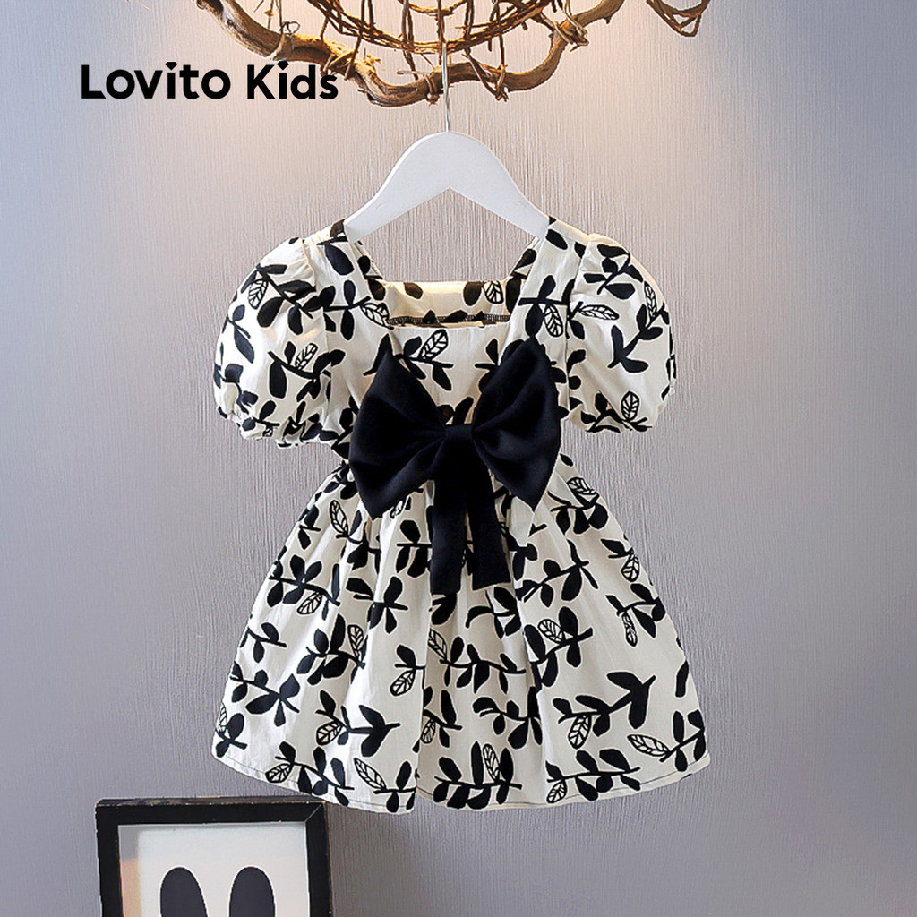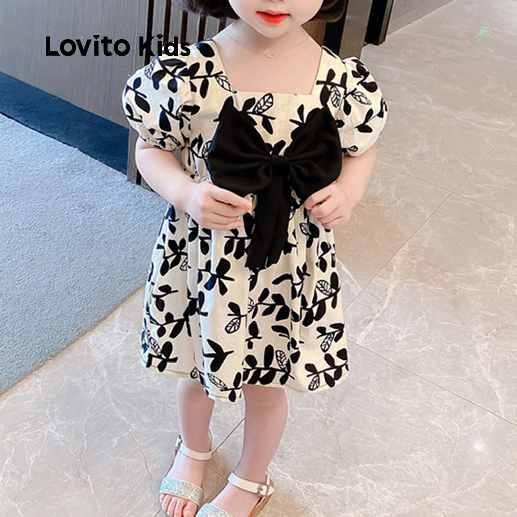 Lovito Kids Vestido Fofo com Laço Na Frente Primavera/verão Preto e Branco Vestido para menina LNL123053