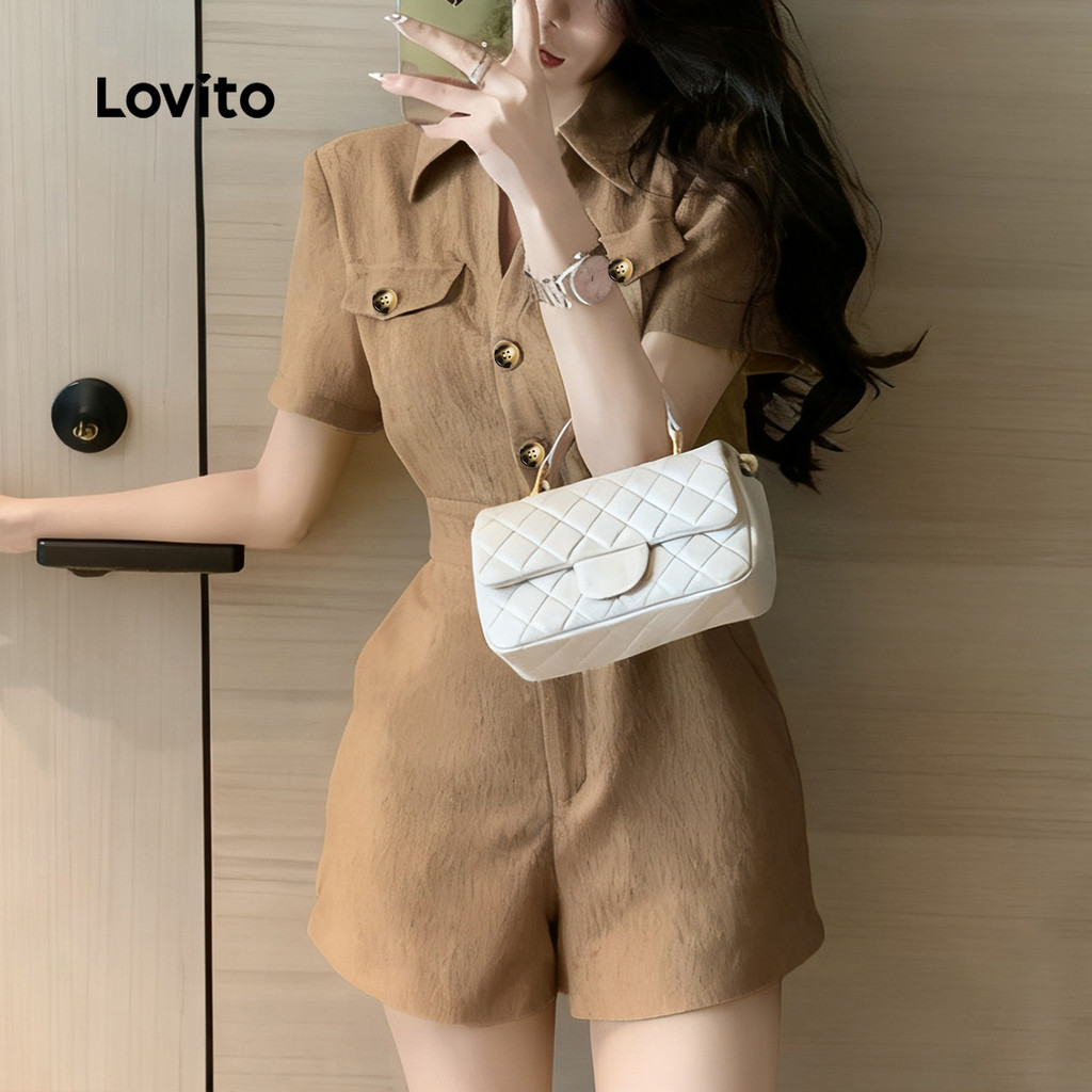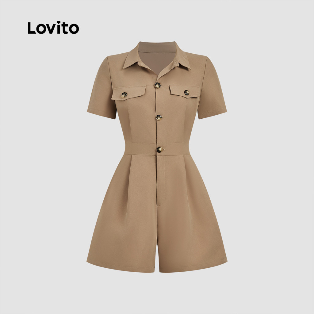 Lovito Macacão Elegante Casual Com Botões Clássico E Versátil Na Cor Cáqui Para Mulheres Primavera/verão L165ED225