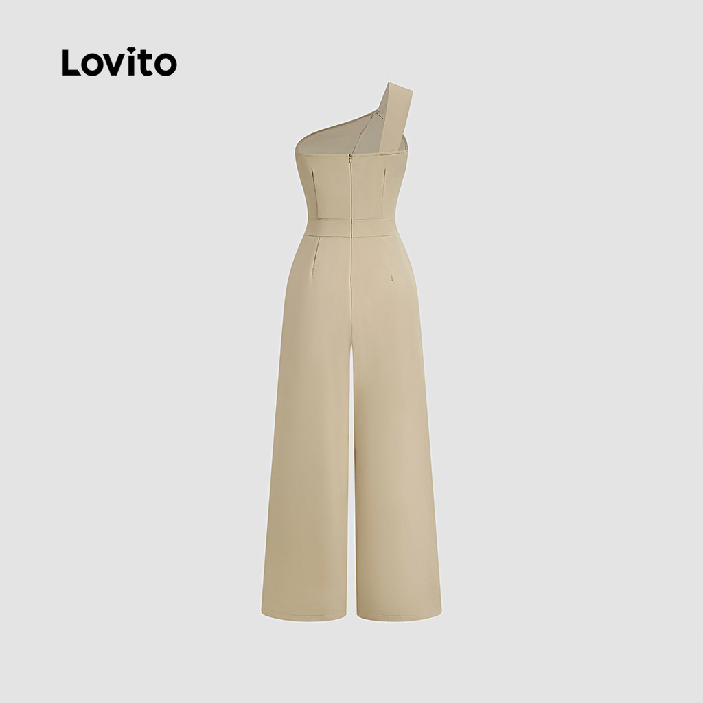 Lovito Macacão Elegante Assimétrico Primavera/verão Macacão Khaki para Mulheres L171ED572