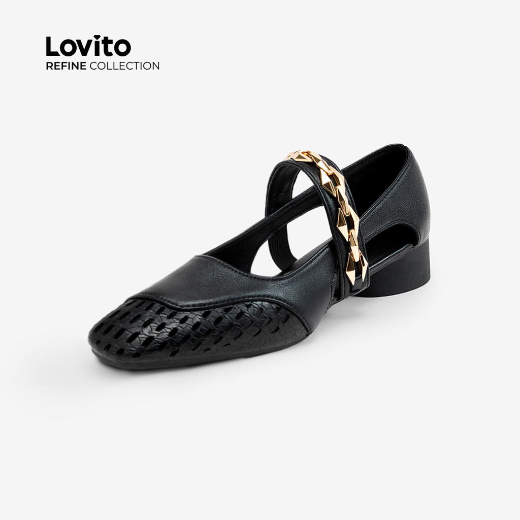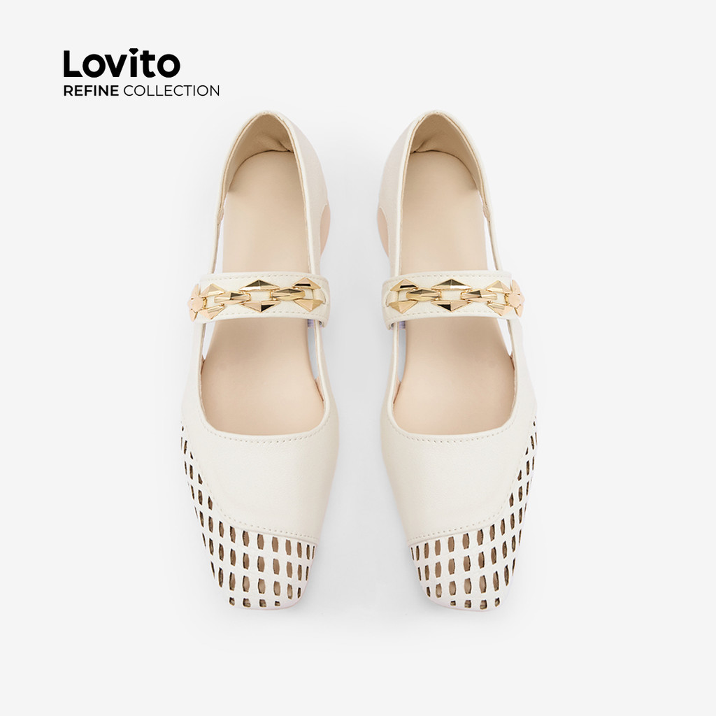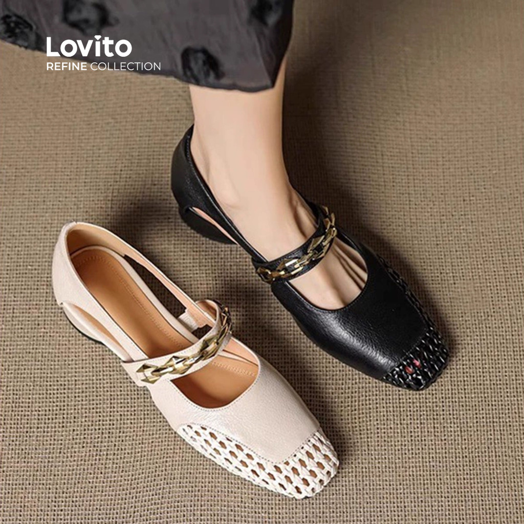 (Lovito Refine) Elegantes Sapatilhas de Ballet com Corrente para mulheres LR24E030