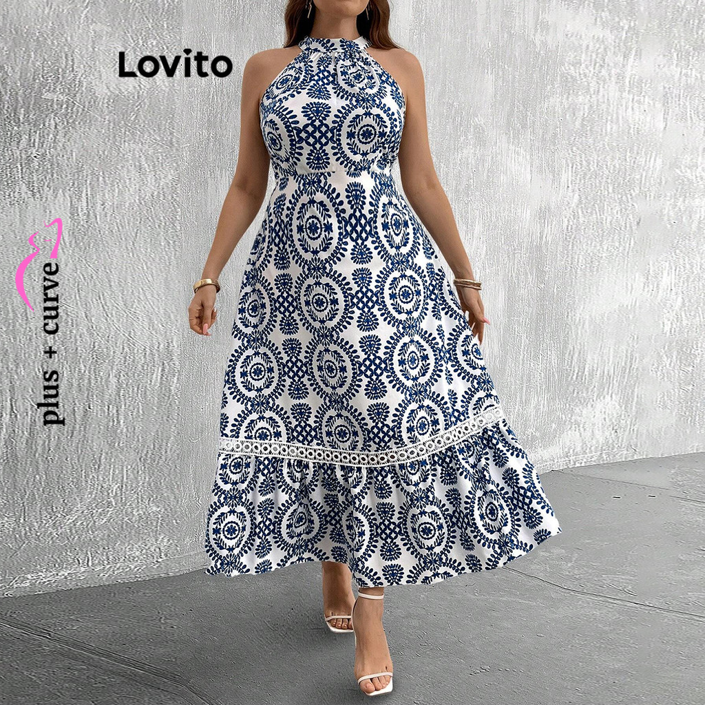Lovito Refine Vestido Feminino Plus Size Renda Geométrica Verão Primavera LBL20490