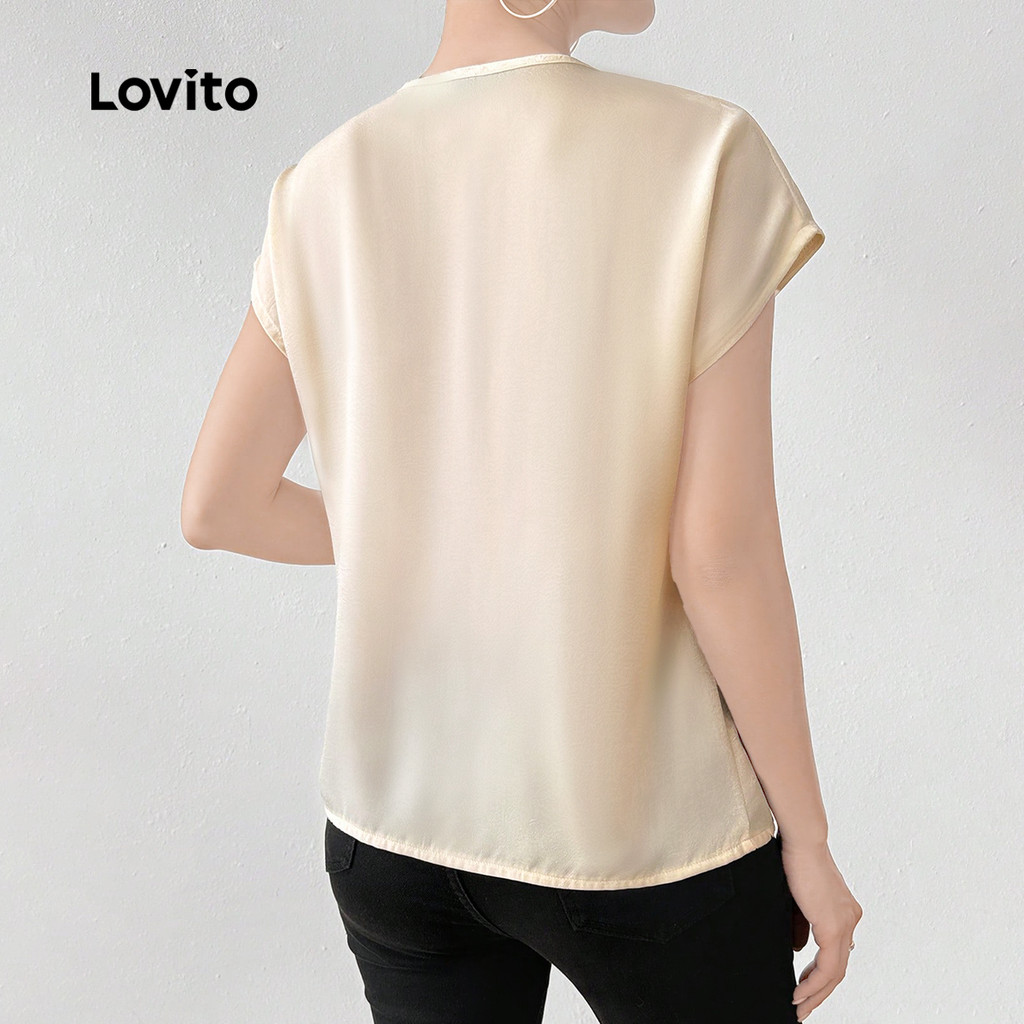 Lovito Blusa Feminina Plissada Lisa Assimétrica Verão Primavera Elegante L128ED564