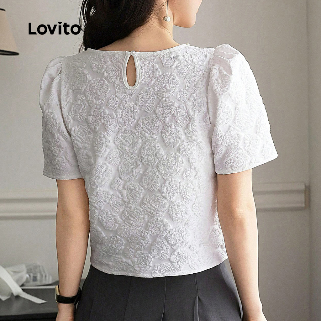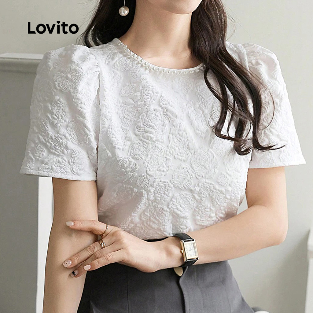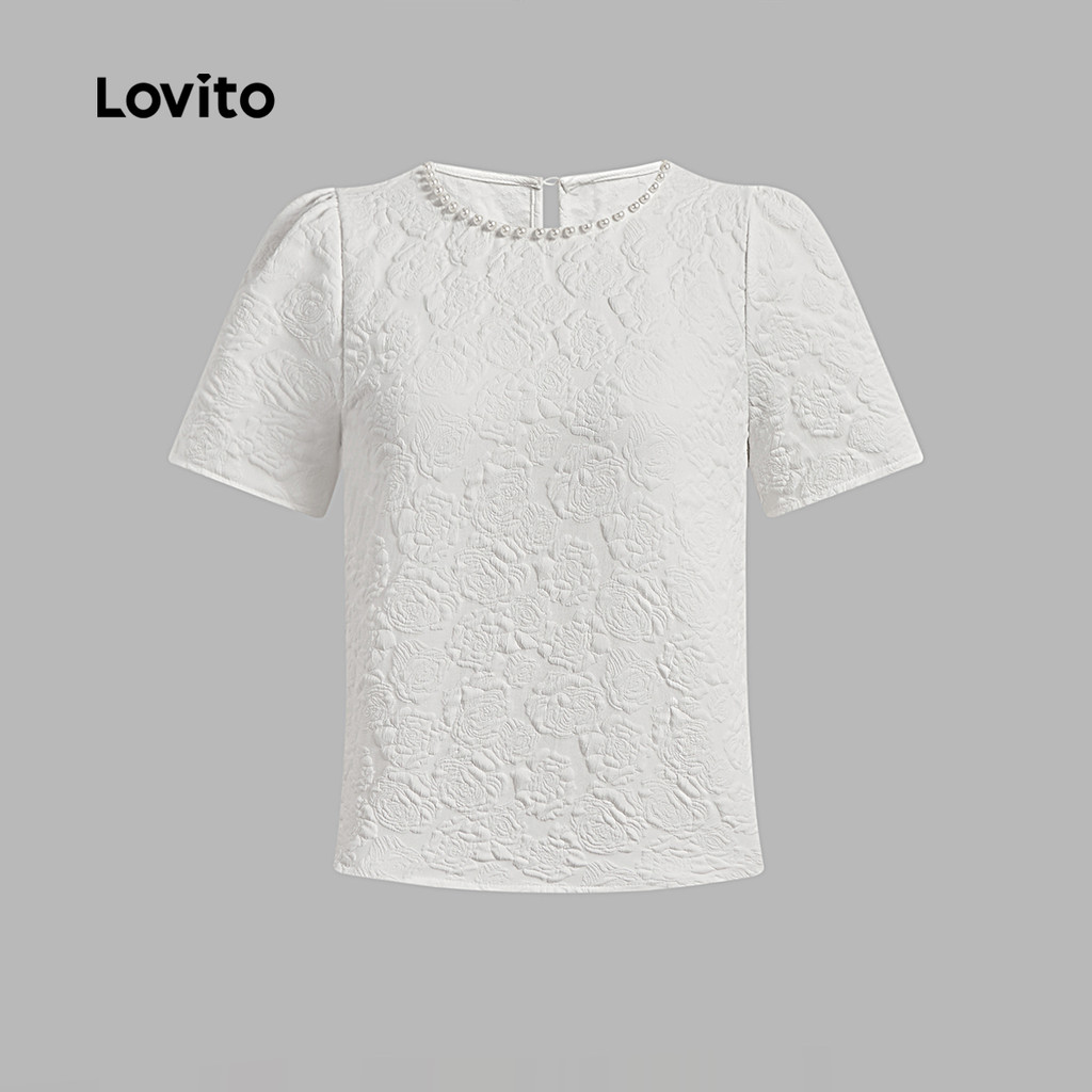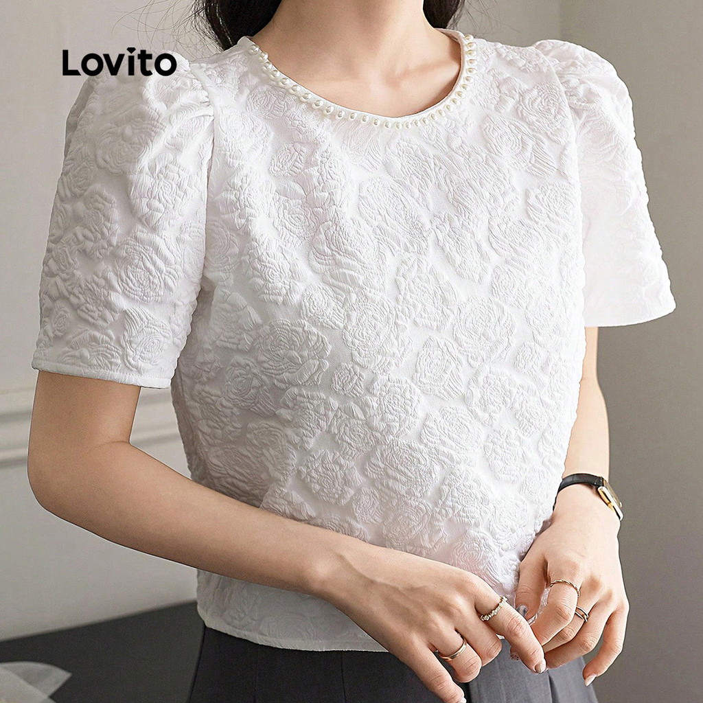 Blusa Feminina Branca de Jacquard com Pérolas Confortável Primavera/Verão L137ED806