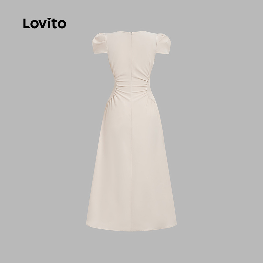 Lovito Vestido Elegante com Pregas Franzido, Leve Cor Caqui, para Mulheres. L171AD016