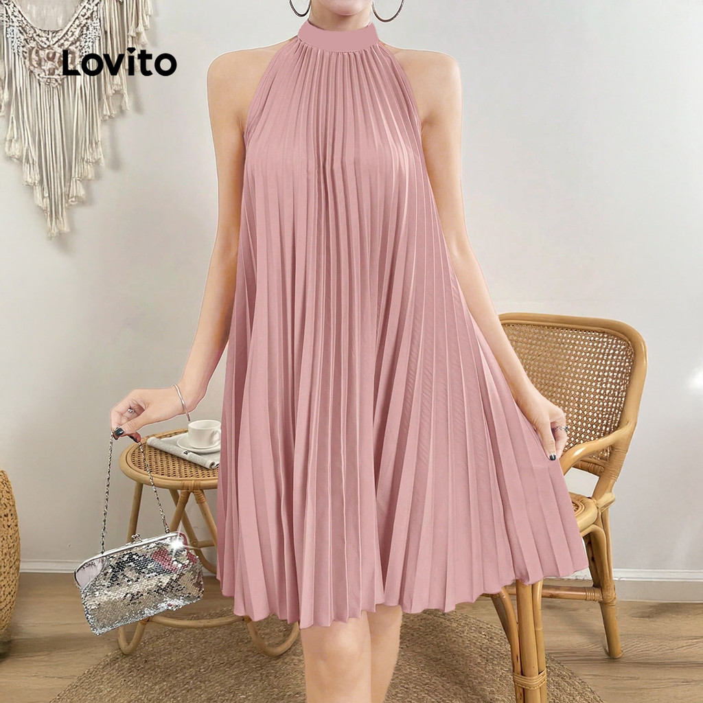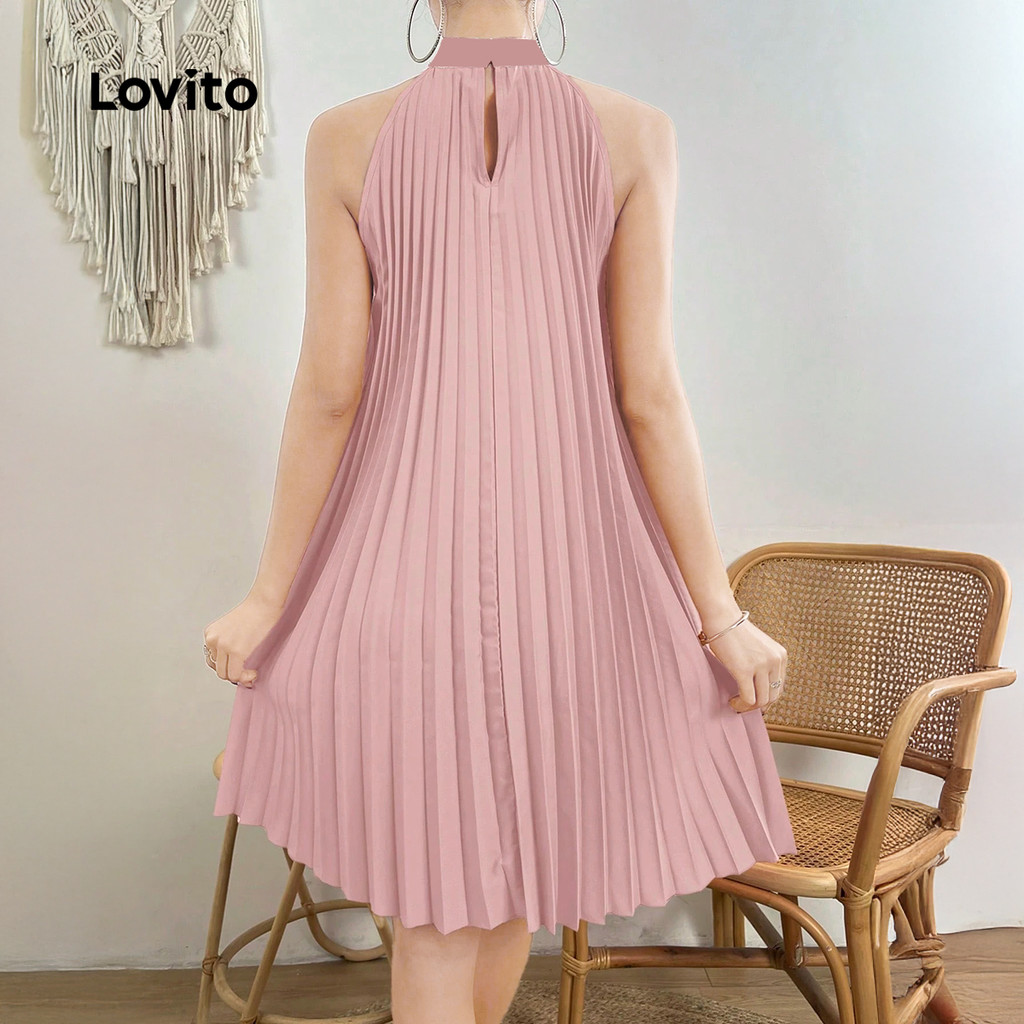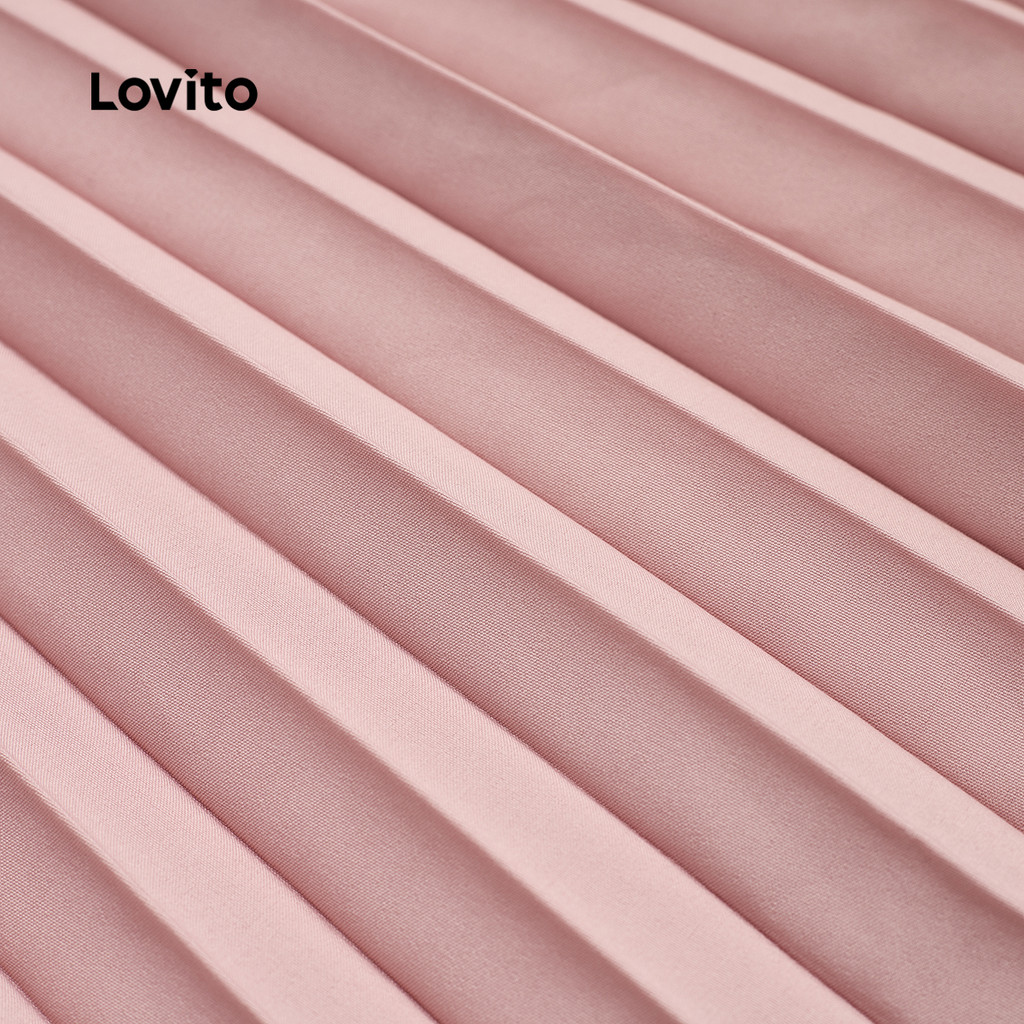 Lovito Vestido Elegante Plissado Francês Estilo Preguiçoso Primavera/verão Rosa para Mulheres LBL33008