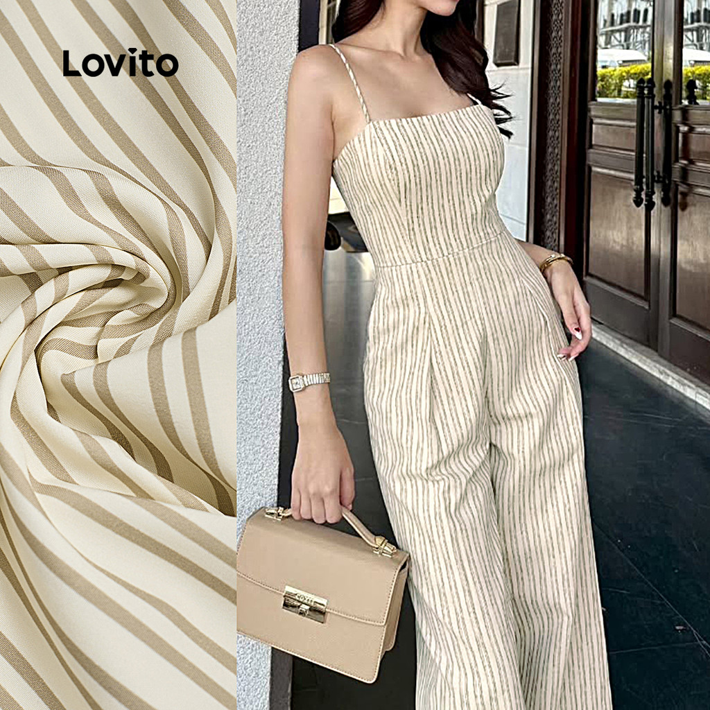 Lovito Macacão Elegante Listrado Macio Confortável Primavera Verão Caqui Feminino L137ED394