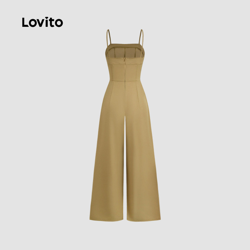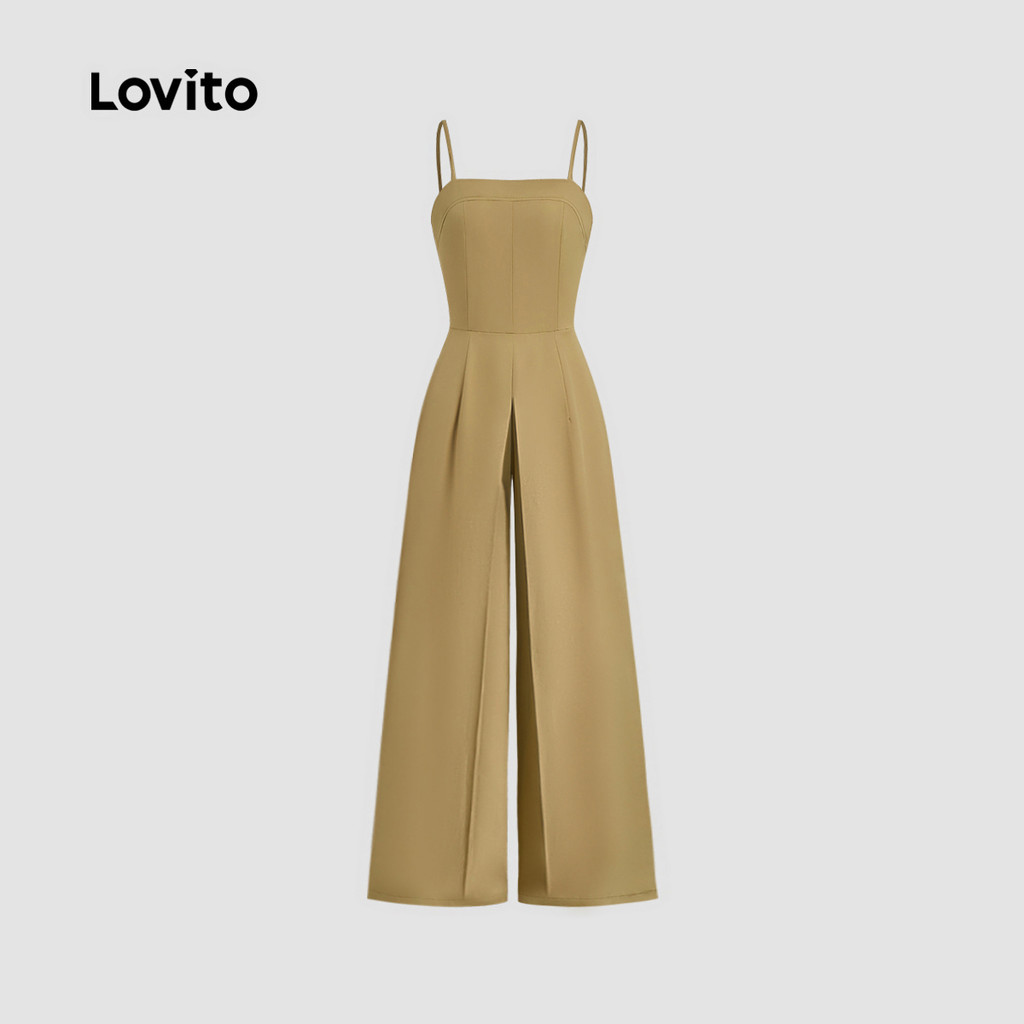 Lovito Macacão Feminino Refinado com Alças Reguláveis Outono/Primavera em Açafrão L154ED1111