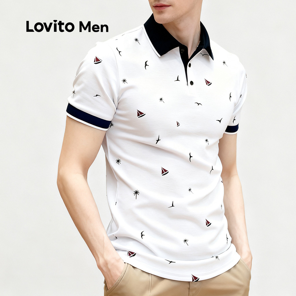 Lovito Camisa Polo Masculina Casual Clássica E Versátil Com Blocos De Cores Para Primavera/verão Cor Branca LNE122140