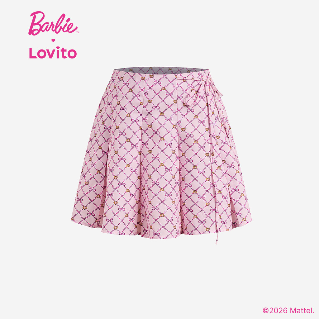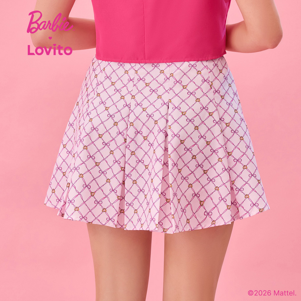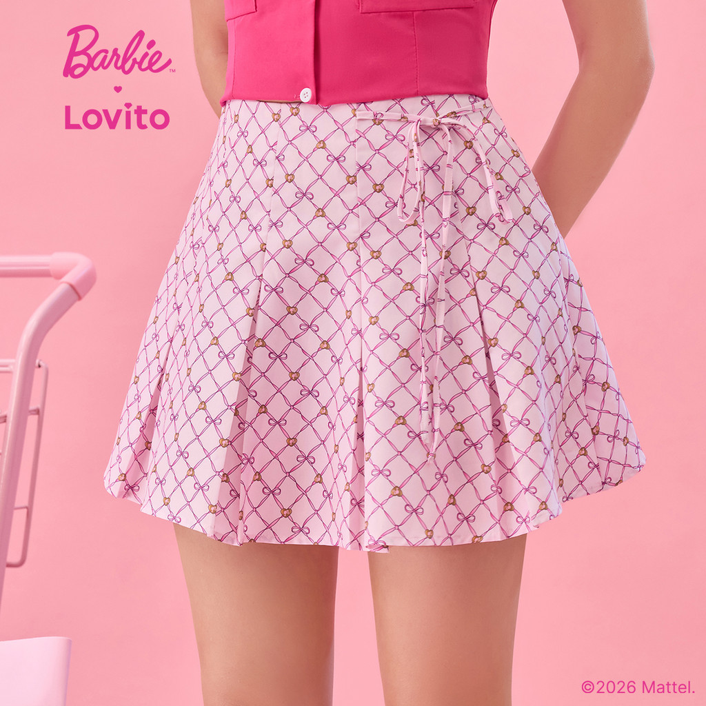 (New arrival) Barbie™ X Lovito Saia Casual Plissada Nó Frente Primavera/Verão Mulheres SKBL2PAD029