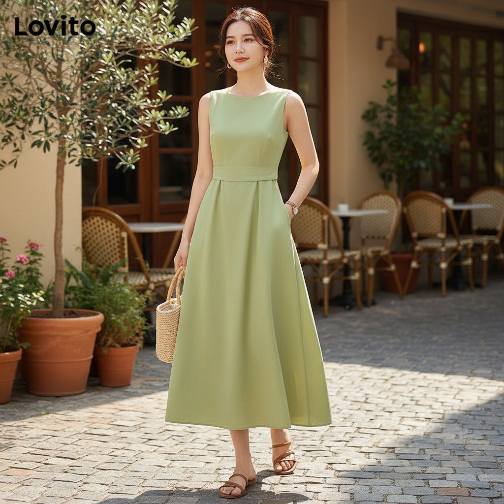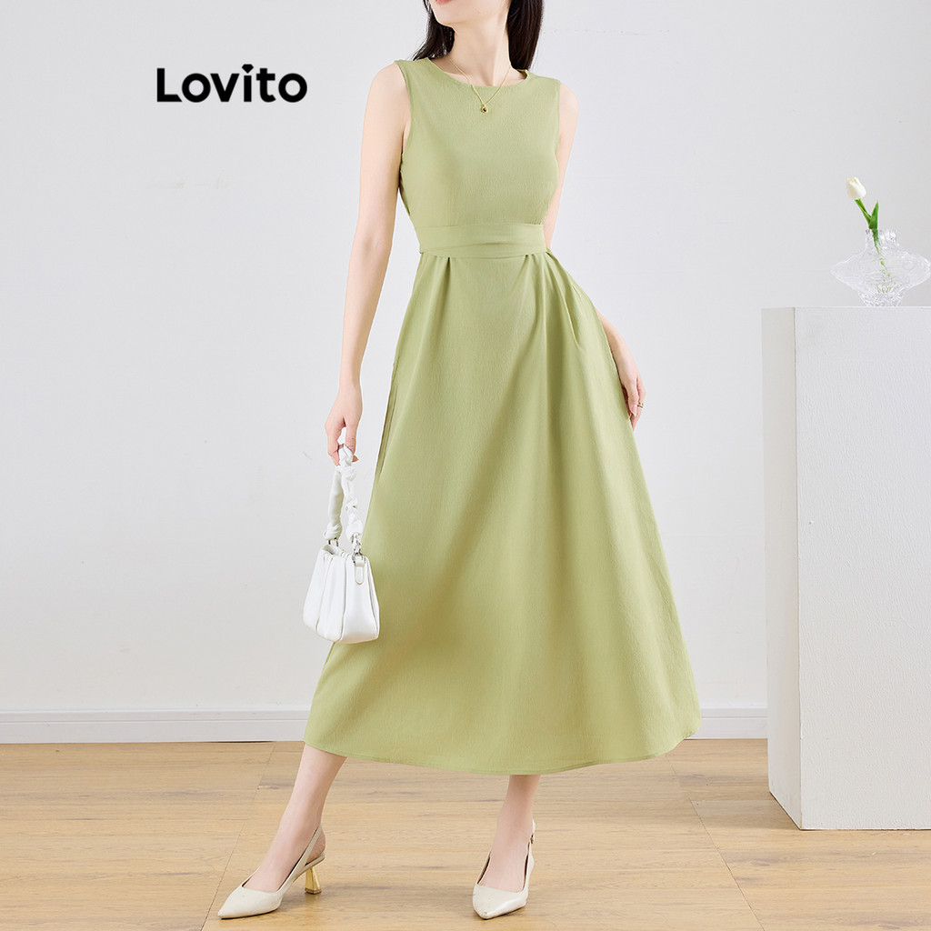 Lovito Refine Vestido feminino básico com amarração L120ED203