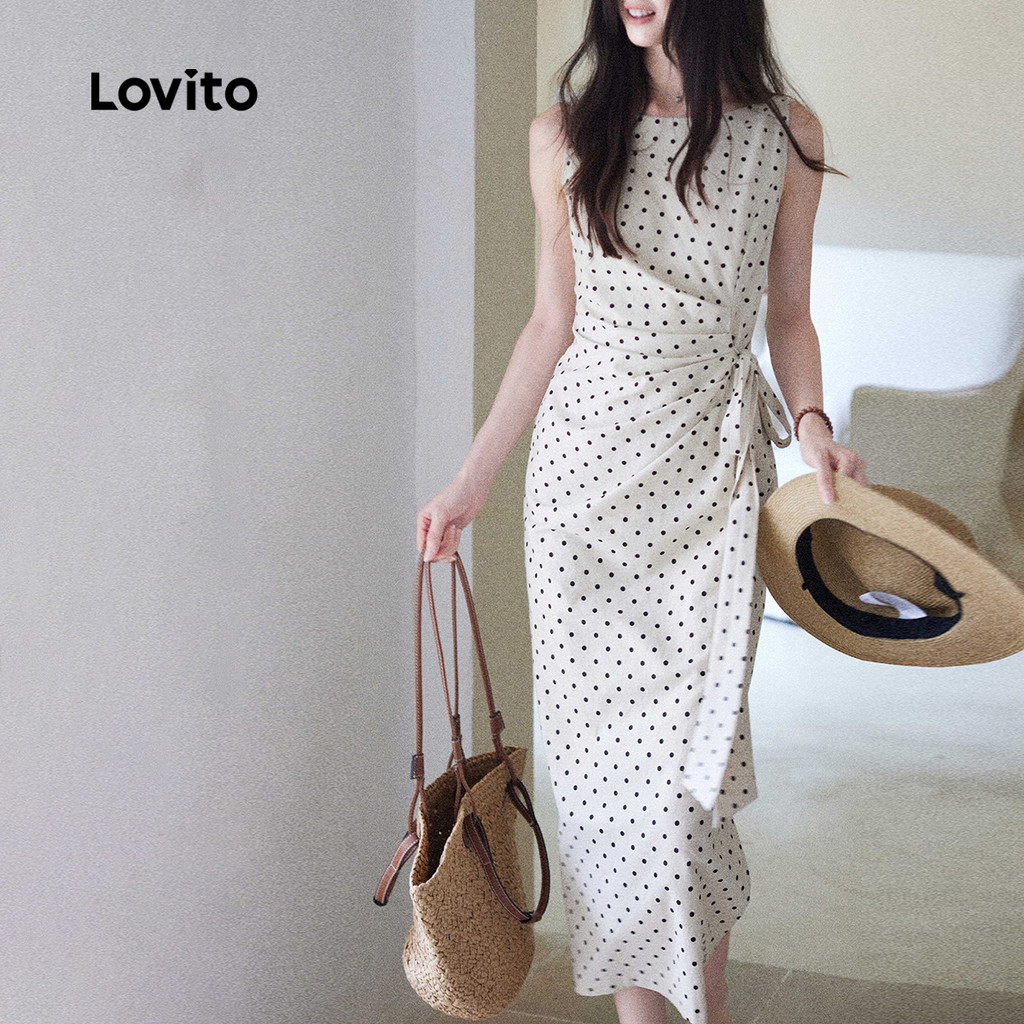 Lovito Vestido Casual de Renda com Amarração para Primavera/verão Off-white para mulheres L159AD066