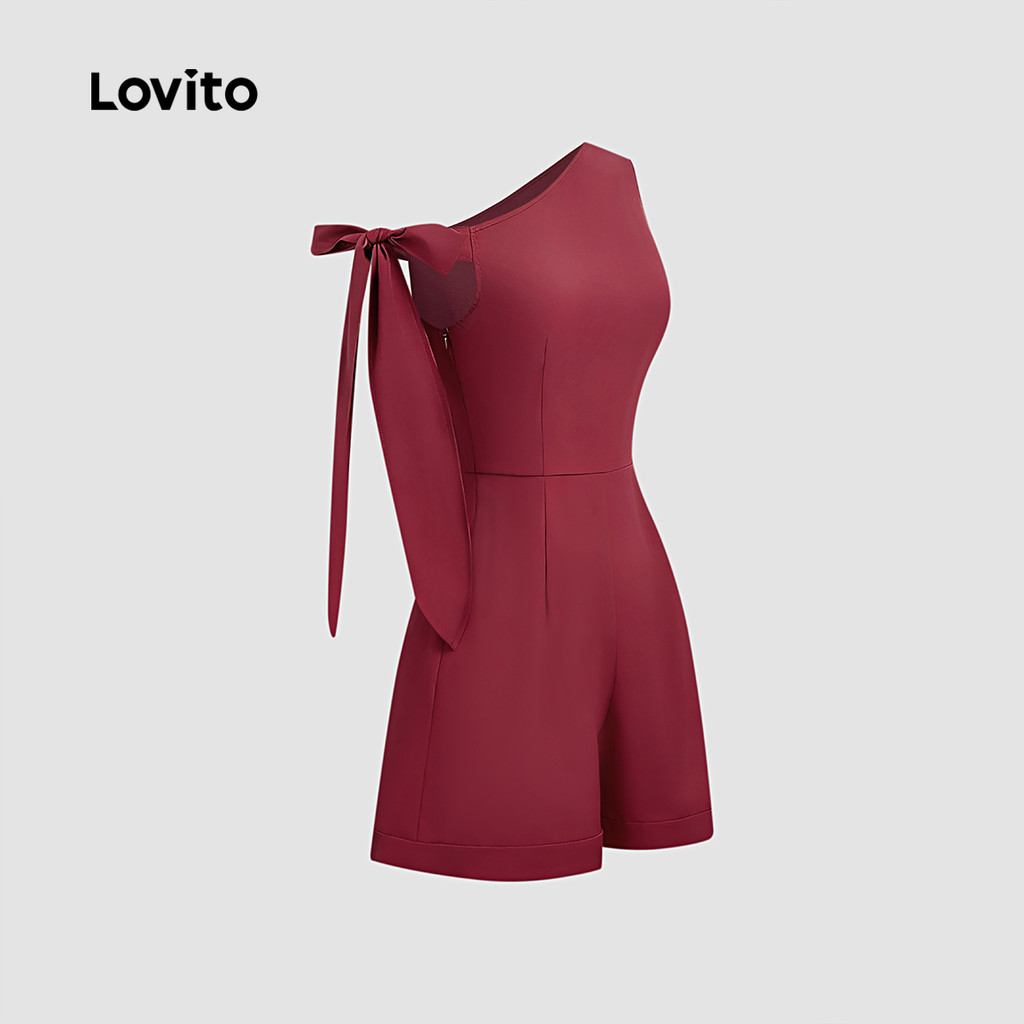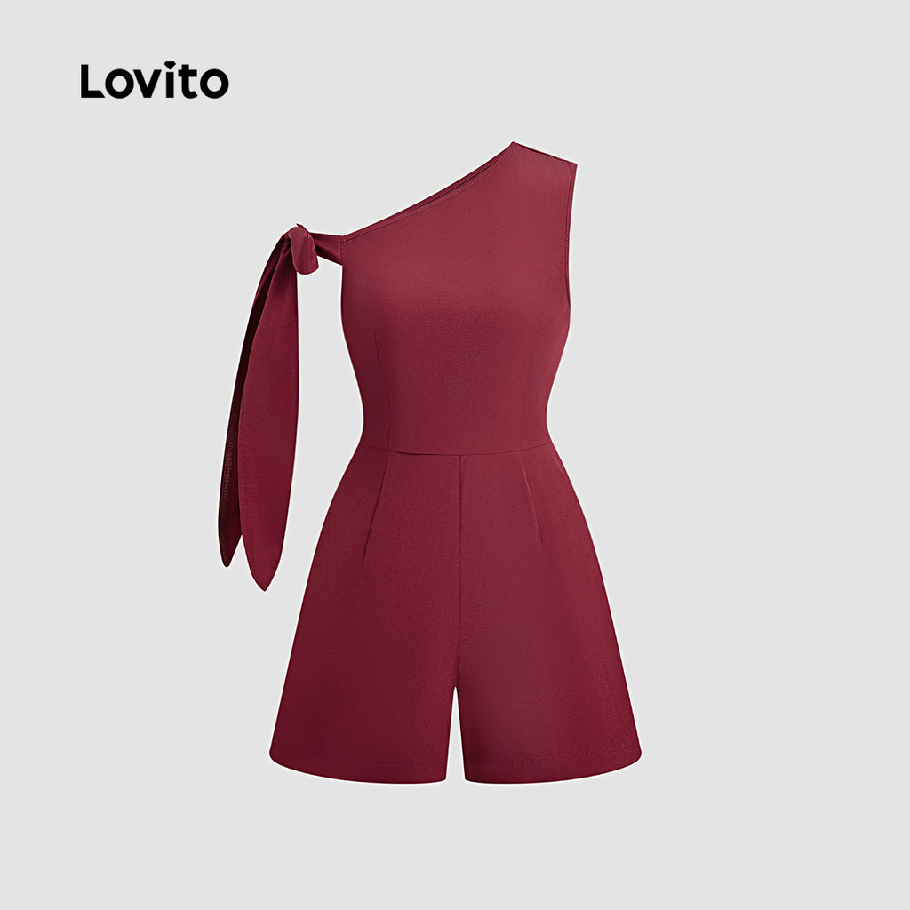 Lovito Macacão Assimétrico Feminino Primavera Verão Elegante Claret L157LD123