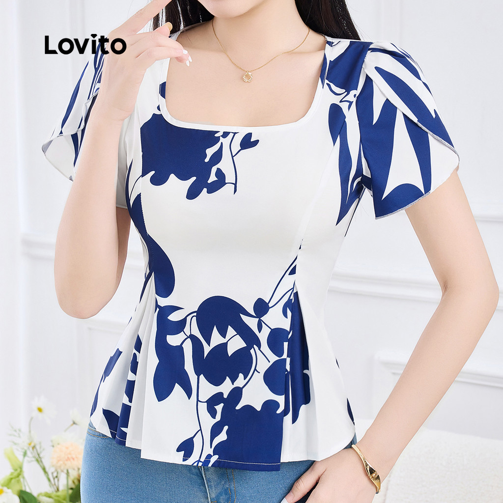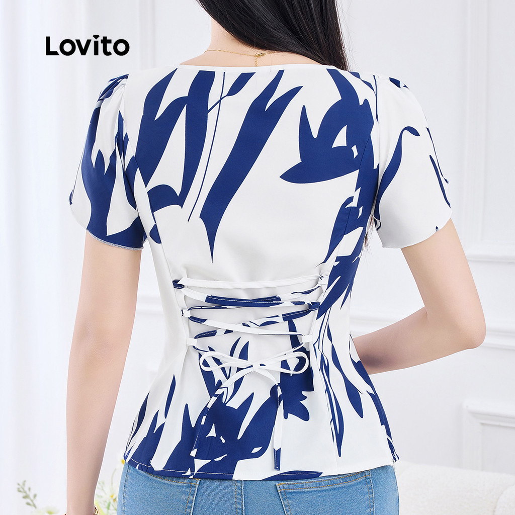Lovito Blusa Casual com Laço Nas Costas e Cruzado Na Frente Primavera/verão Blusa Azul para Mulheres L155AD282