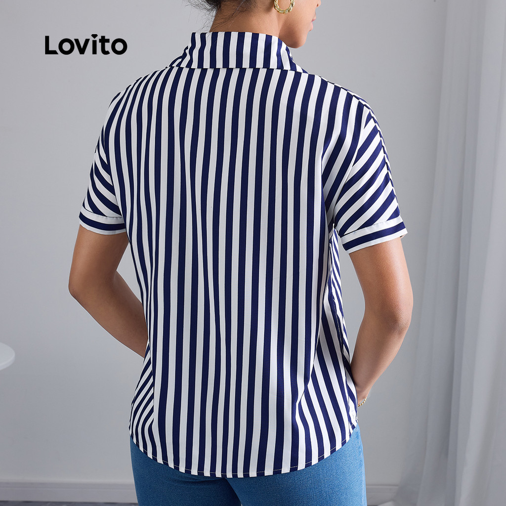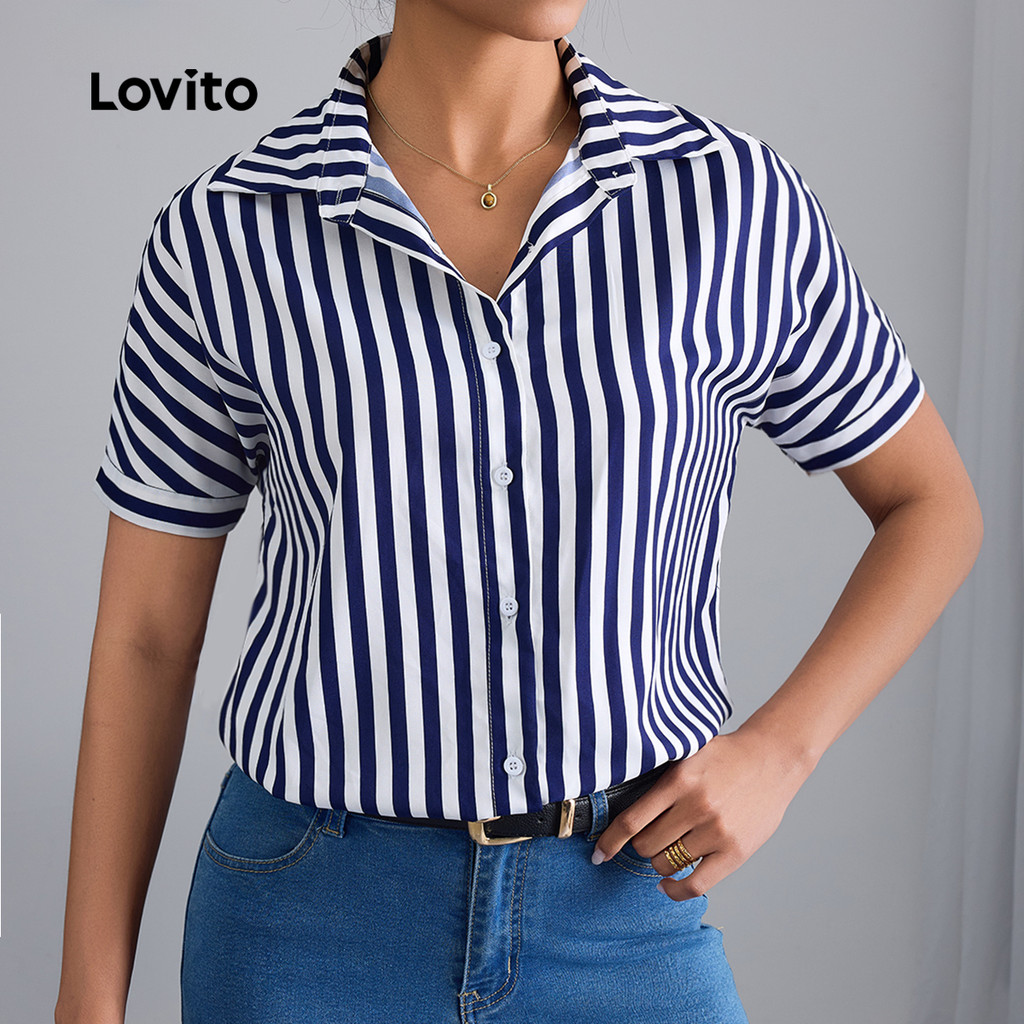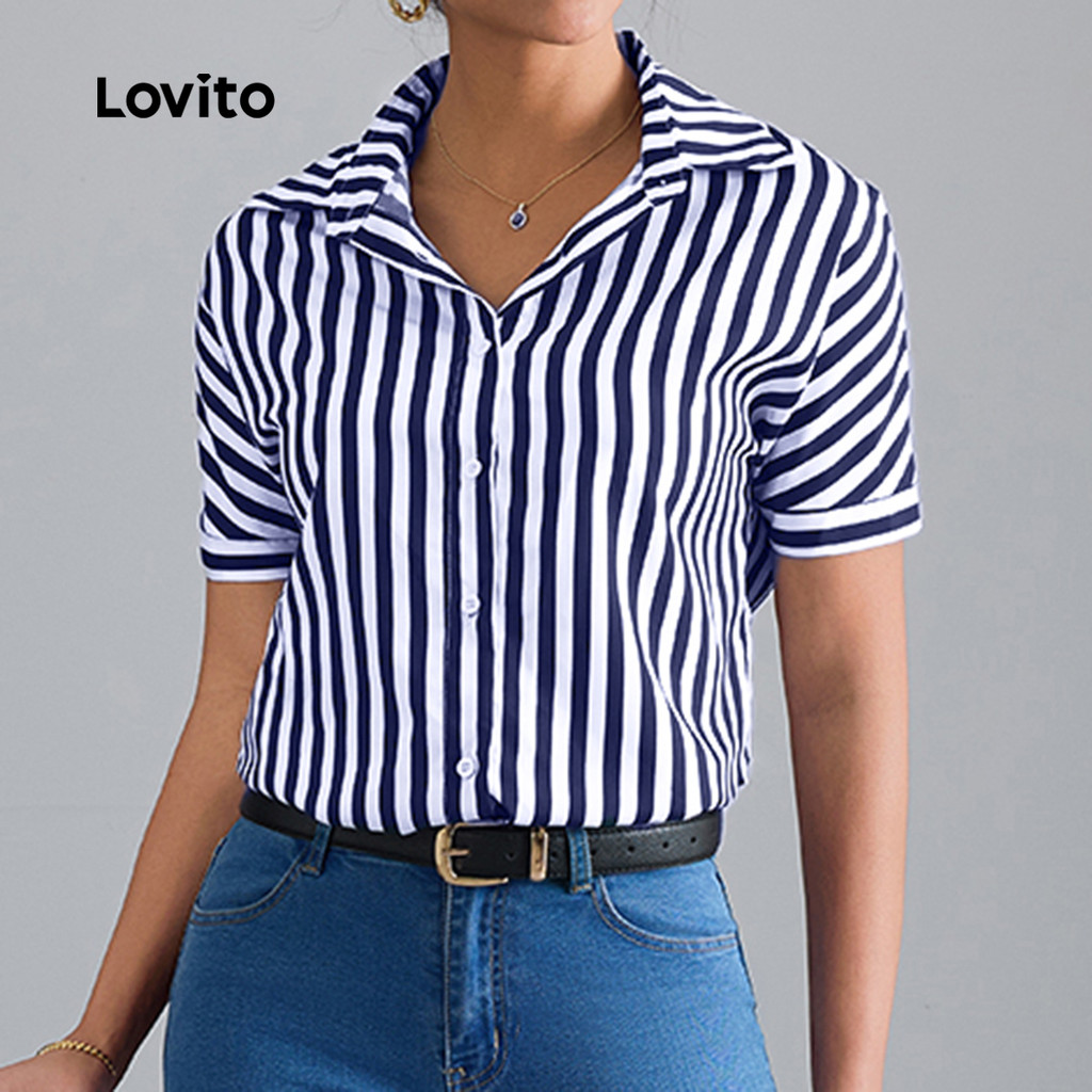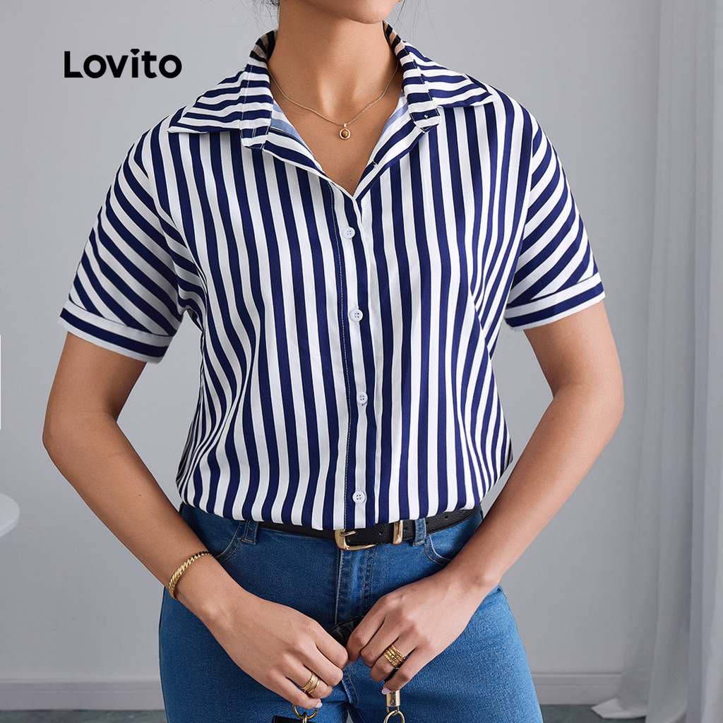 Lovito Blusa feminina Casual lateral com listras e botão frontal LBL22493