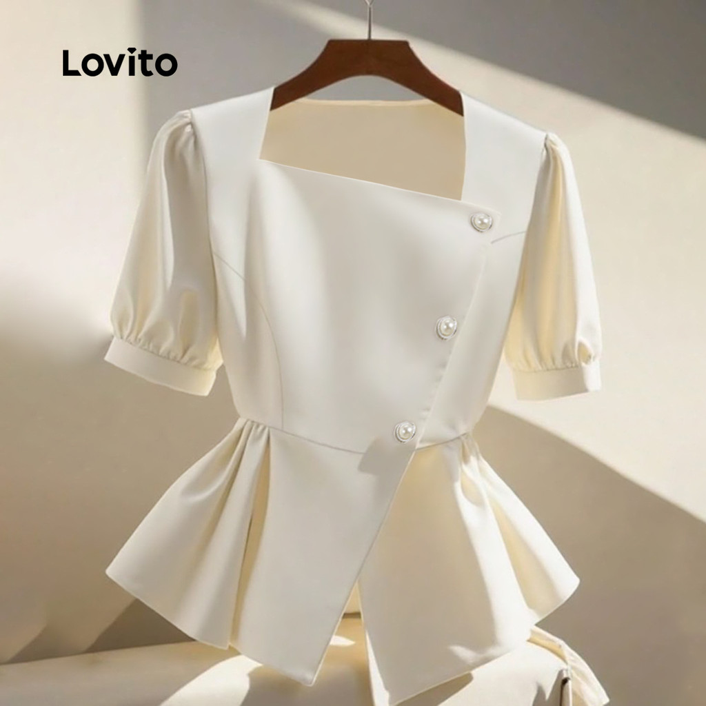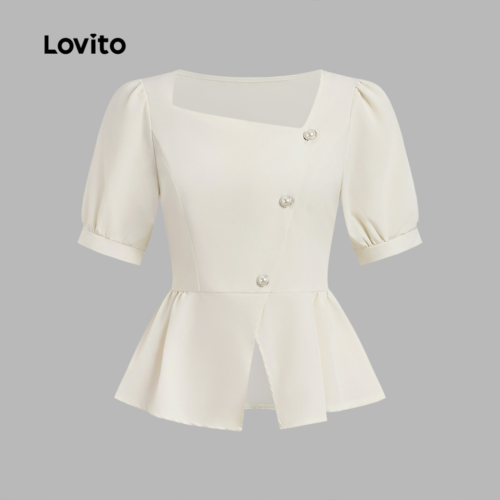 Lovito Blusa Assimétrica com Botões para Primavera/Verão Elegante Feminina Off-white L137LD210