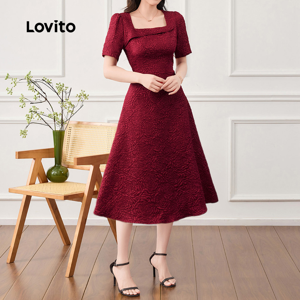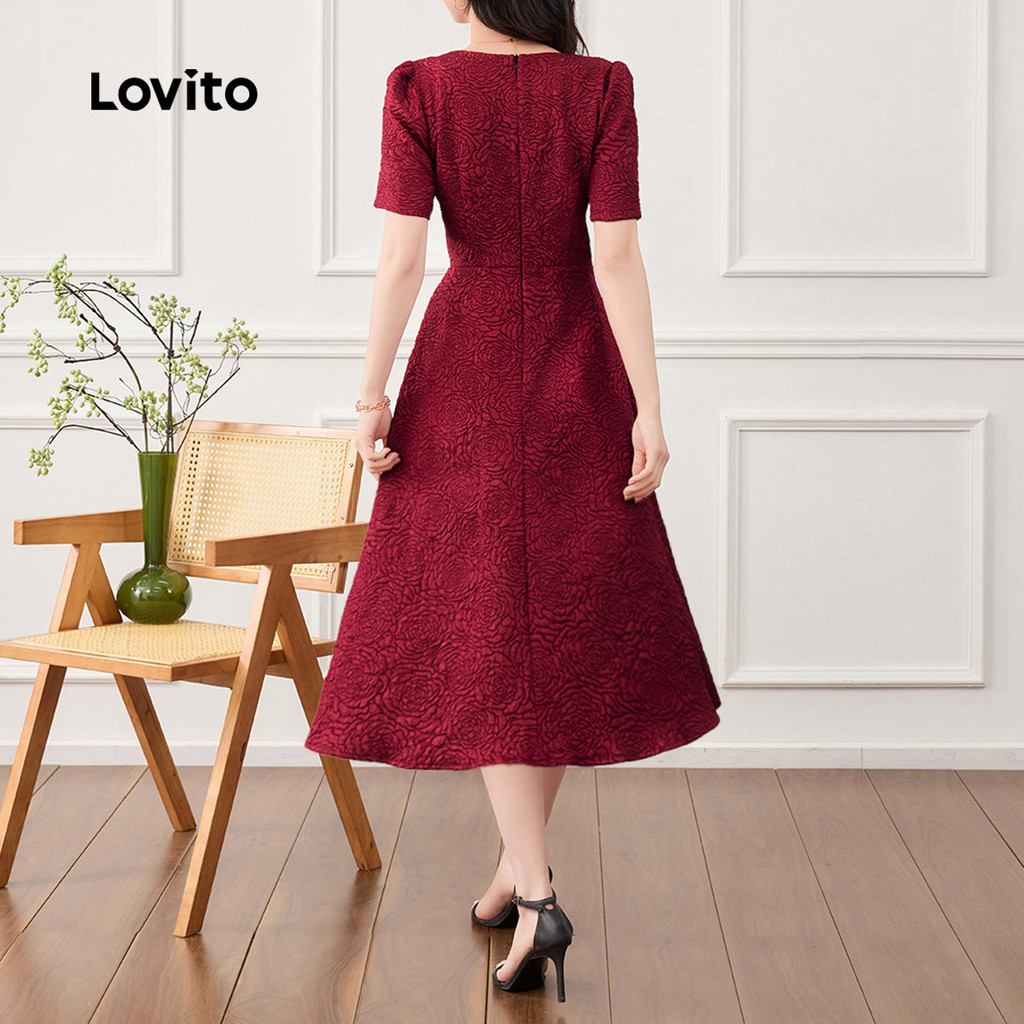 Lovito Vestido Elegante de Tecido Texturizado Primavera/verão Vestido Bordô para mulheres L165ED314