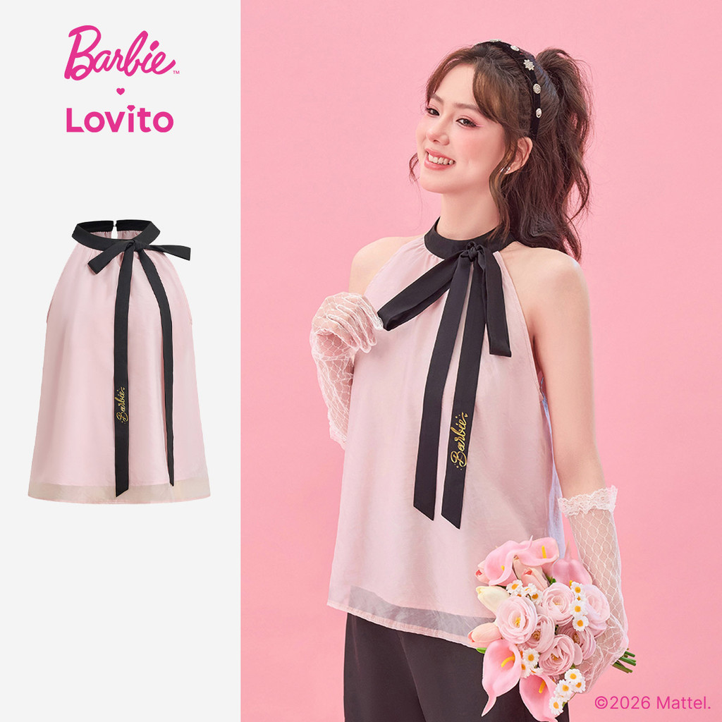 (New arrival) Barbie™ X Lovito Top Casual Colorblock Leve Flexível Primavera/Verão Mulheres TKBL2PAD045