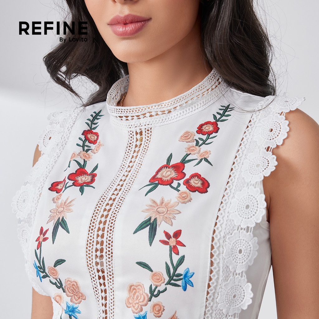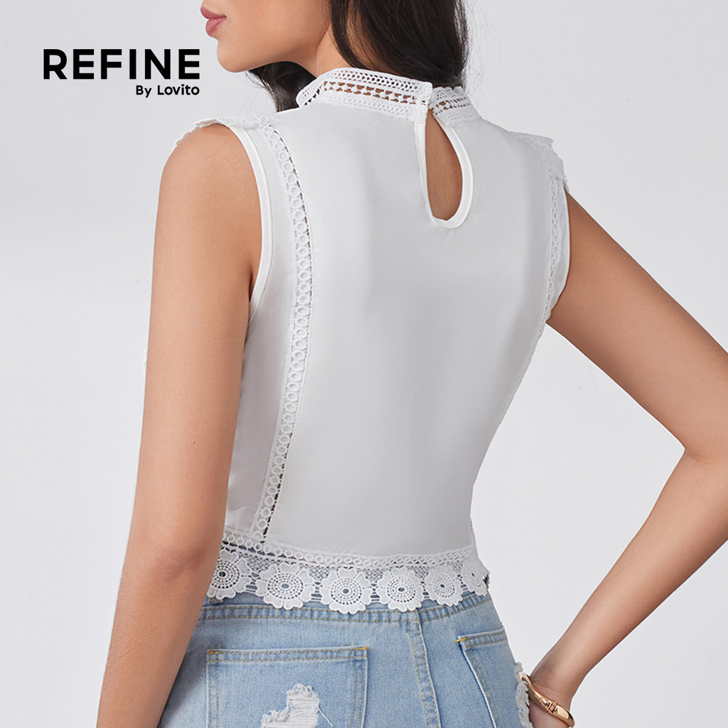 (Refine by Lovito) Padrão de Renda Top Boho com Zíper para Primavera/verão para Mulheres LR32L024