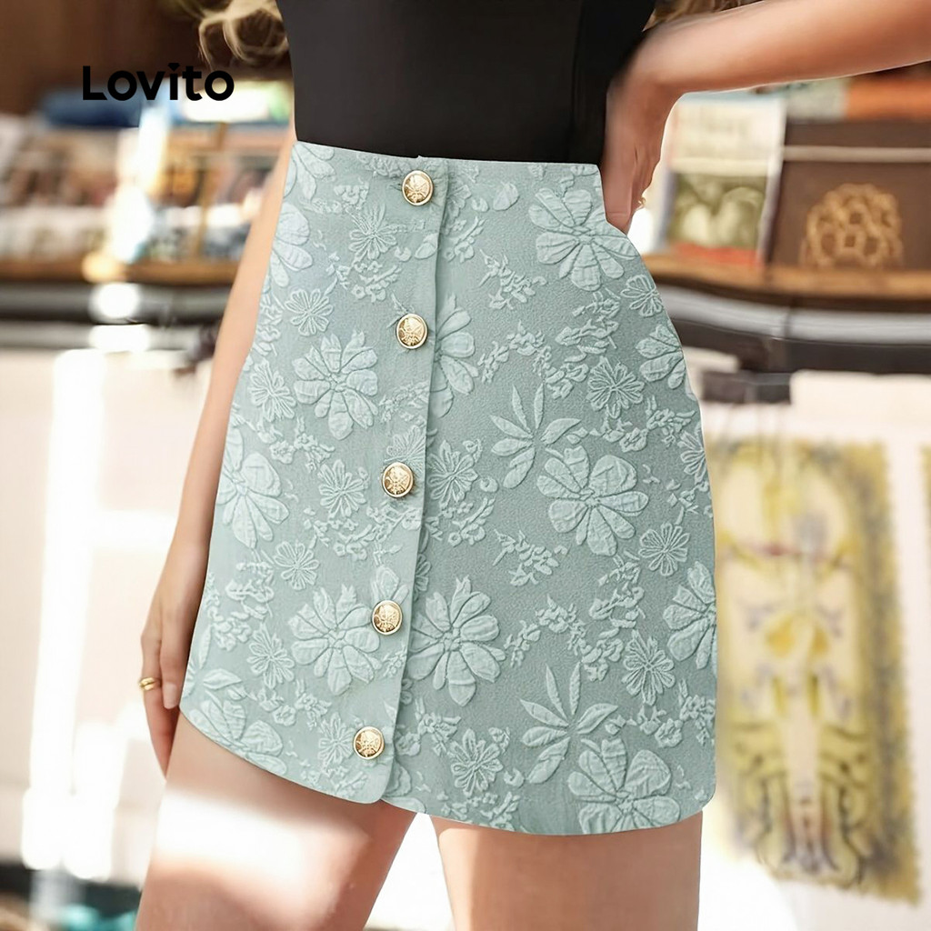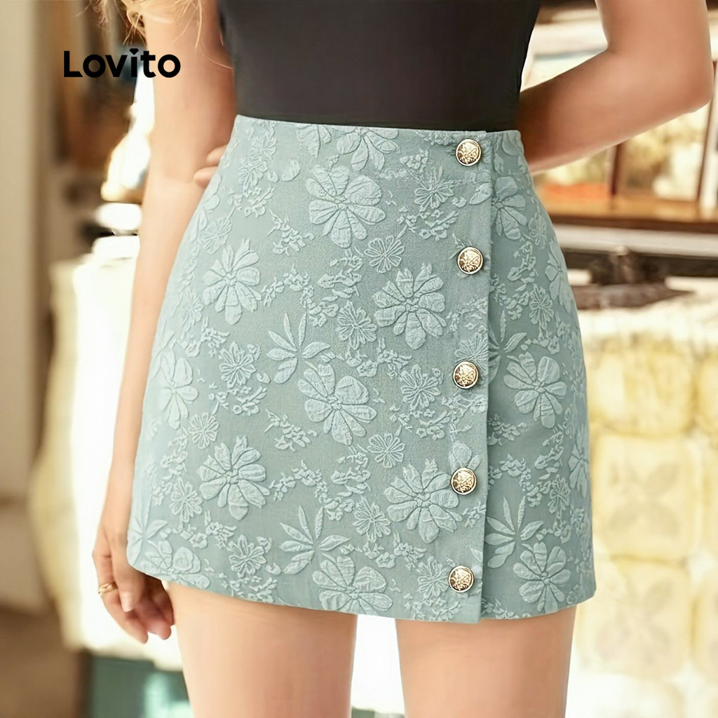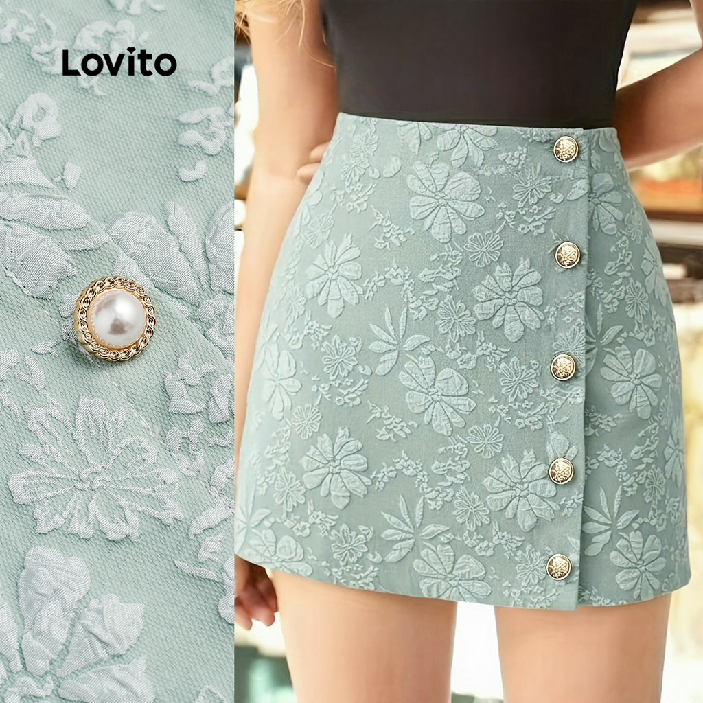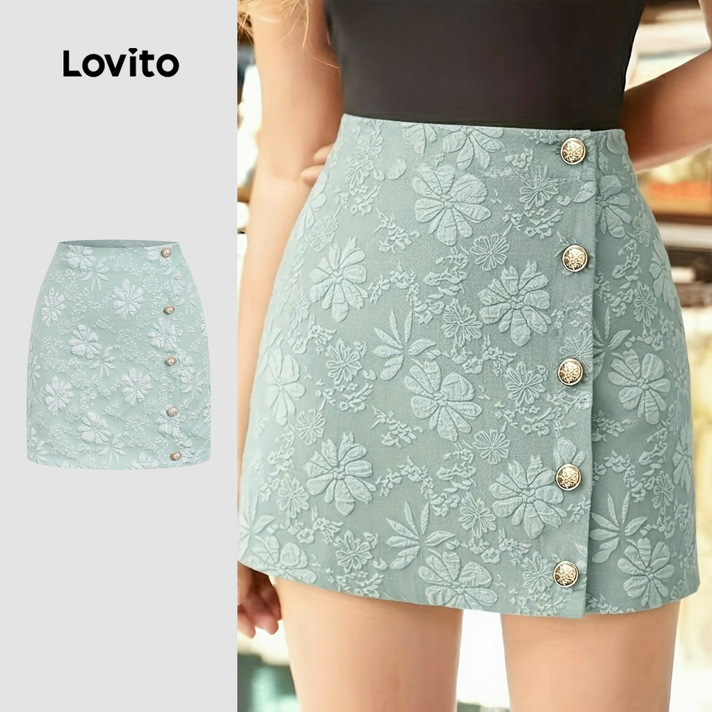Lovito Saias Casuais em Jacquard com Zíper para Mulheres Verde Temporada Primavera Verão L172ED871