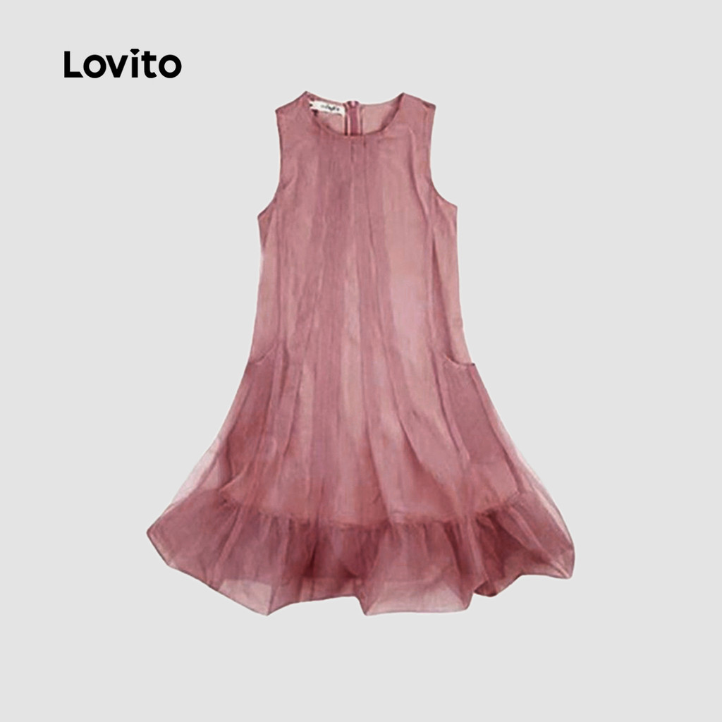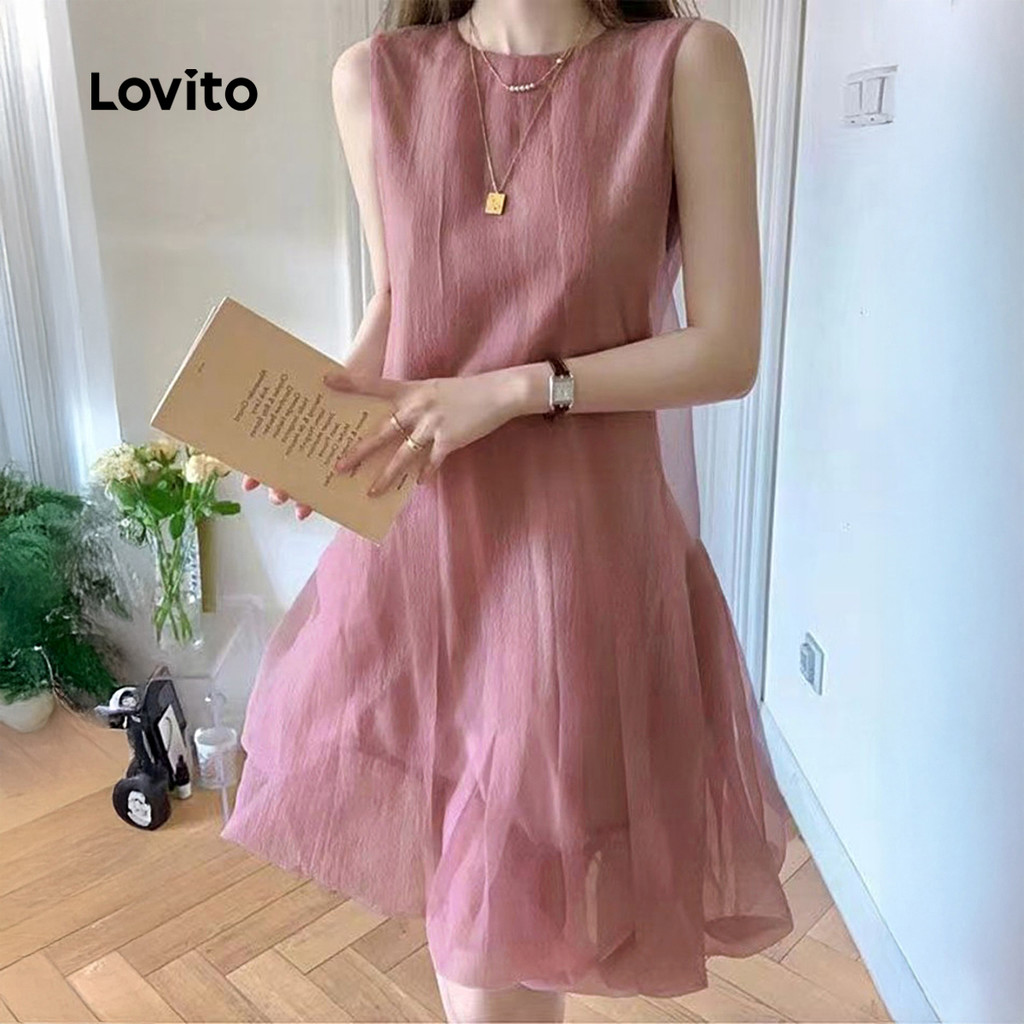 Lovito Vestido Elegante Dupla Camada Luxo Leve Festa De Dia Primavera/verão Rosa para Mulheres L171ED1032