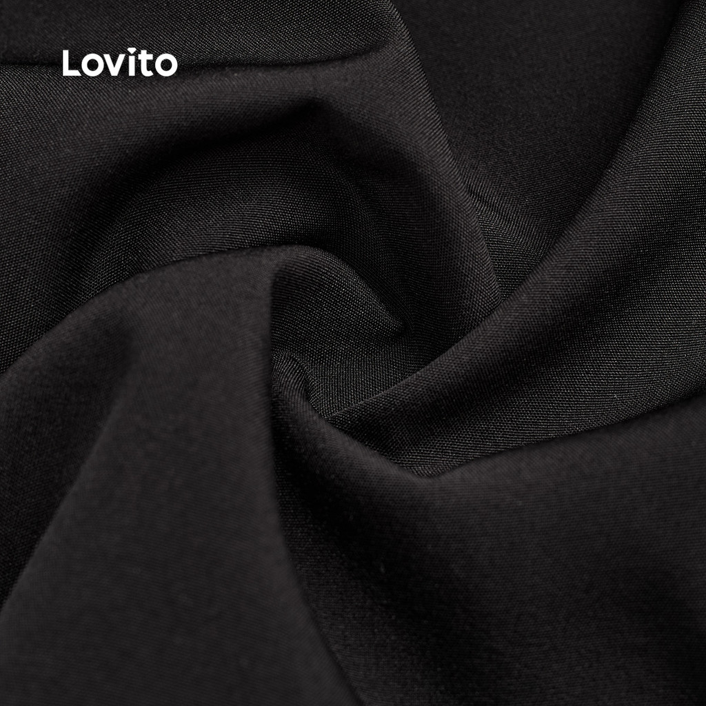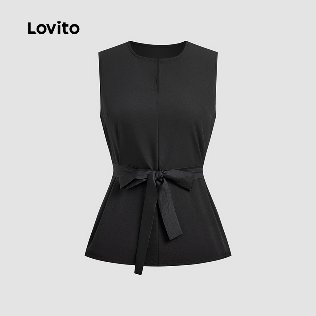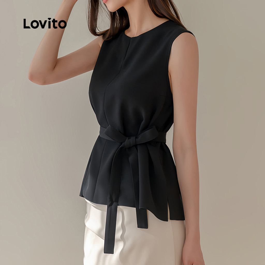 Lovito Blusa Sofisticada com Laço Frontal para Primavera/verão Camisa Feminina Preta LBL29373