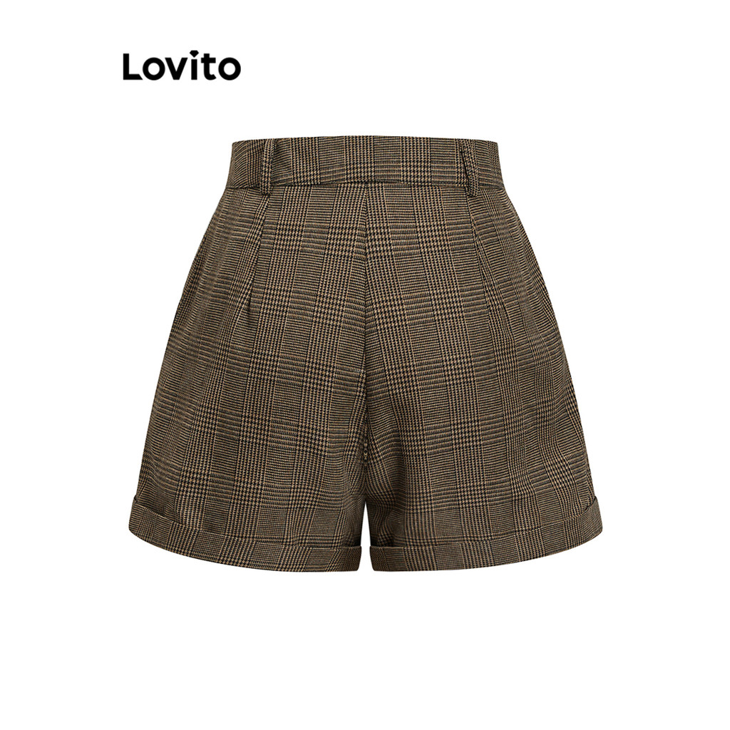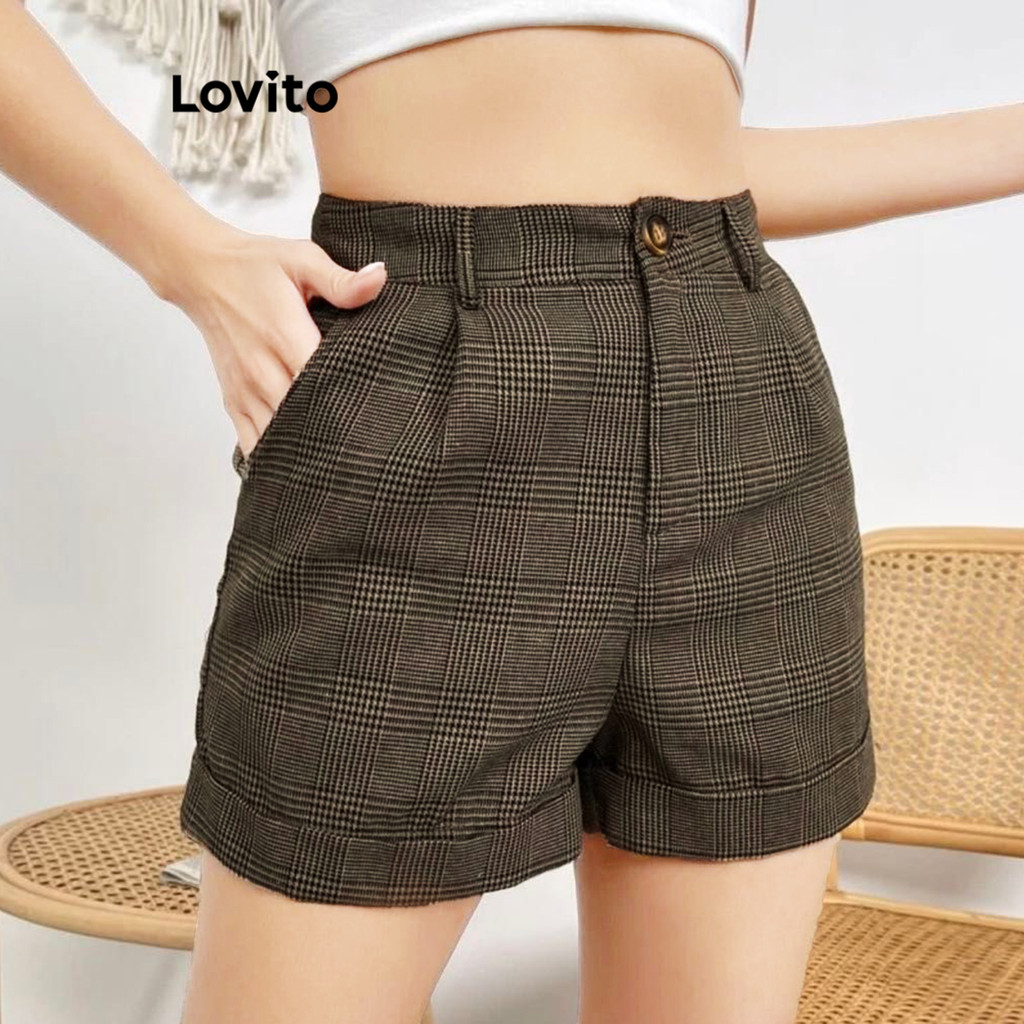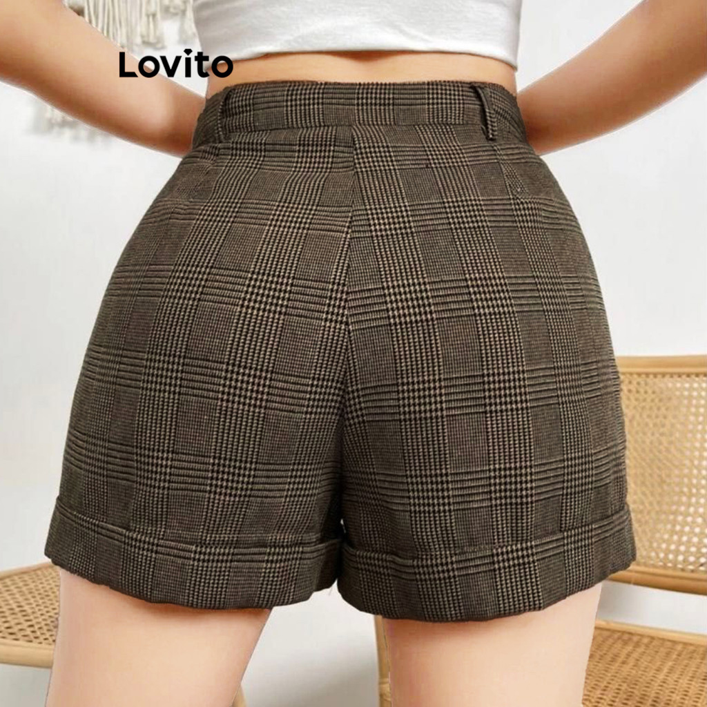 Lovito Shorts Femininos Curtos Xadrez Com Bolso L108ED670\5