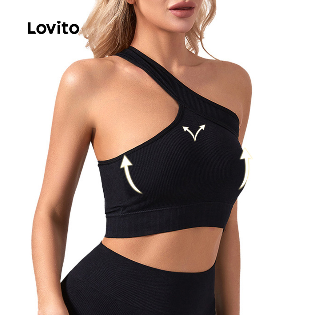 Lovito Sutiã Esportivo Liso Assimétrico Alça Única Push Up Yoga Anti-Impacto LNL44043