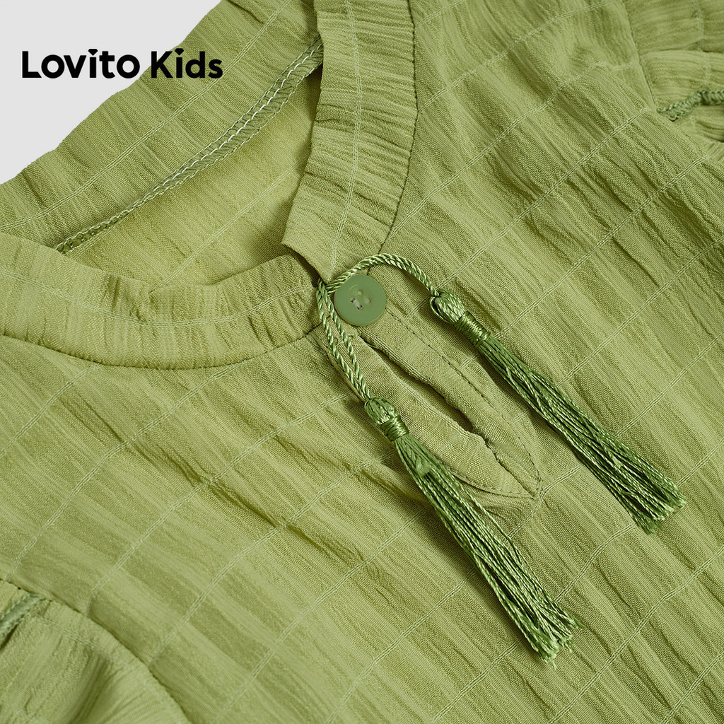 Lovito Kids Vestido Casual com Borla e Camadas em Degraéis para Primavera/verão Verde para Menina L168LD182