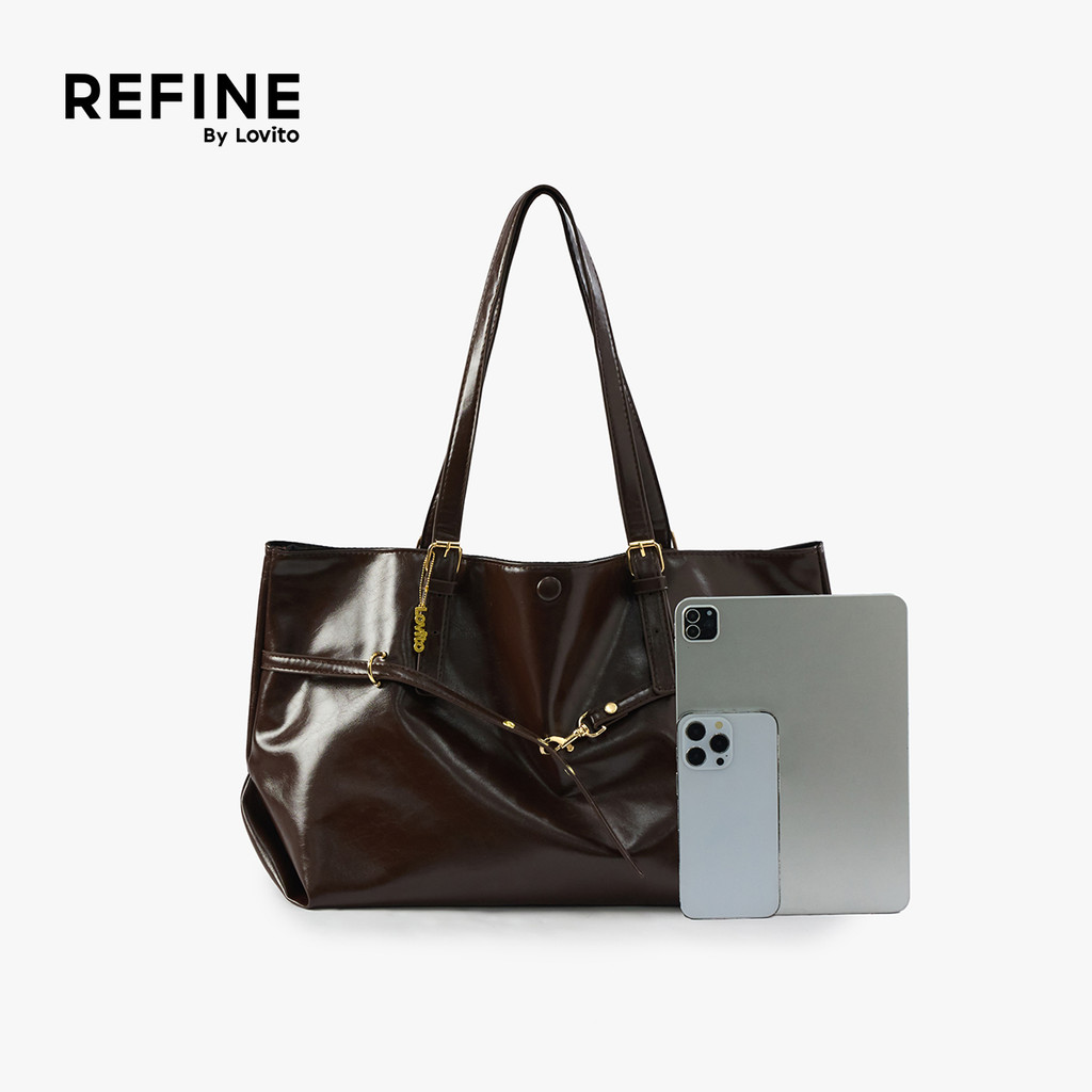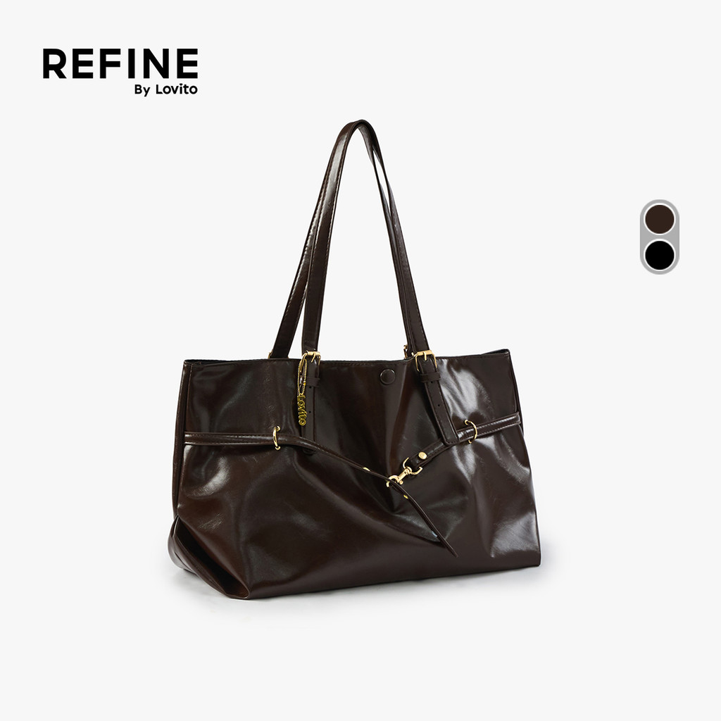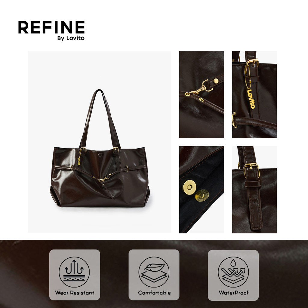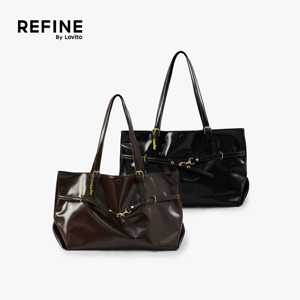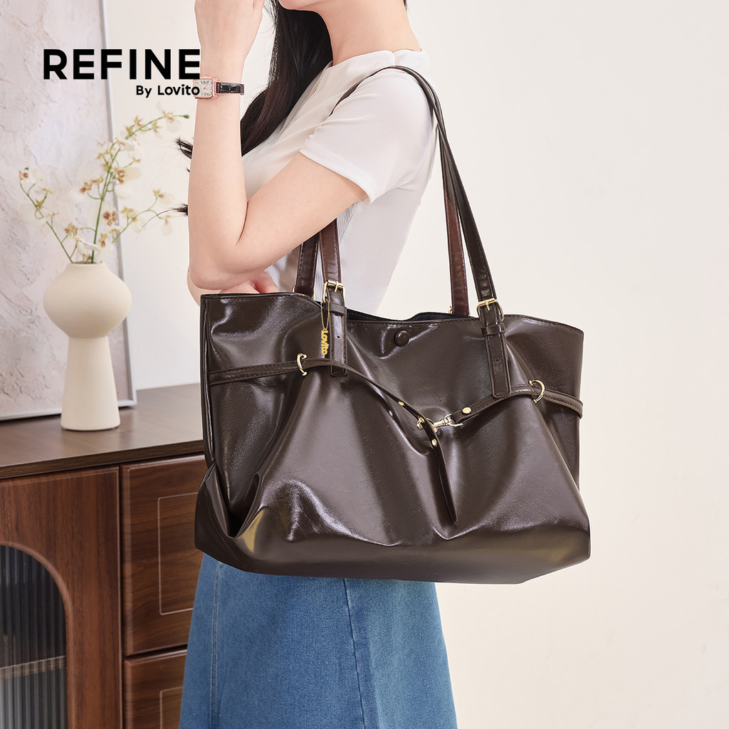 (Lovito Refine) Bolsa De Ombro Casual De Grande Capacidade Fecho Requintado Em Pu Alta Qualidade Para Mulheres LR30E037