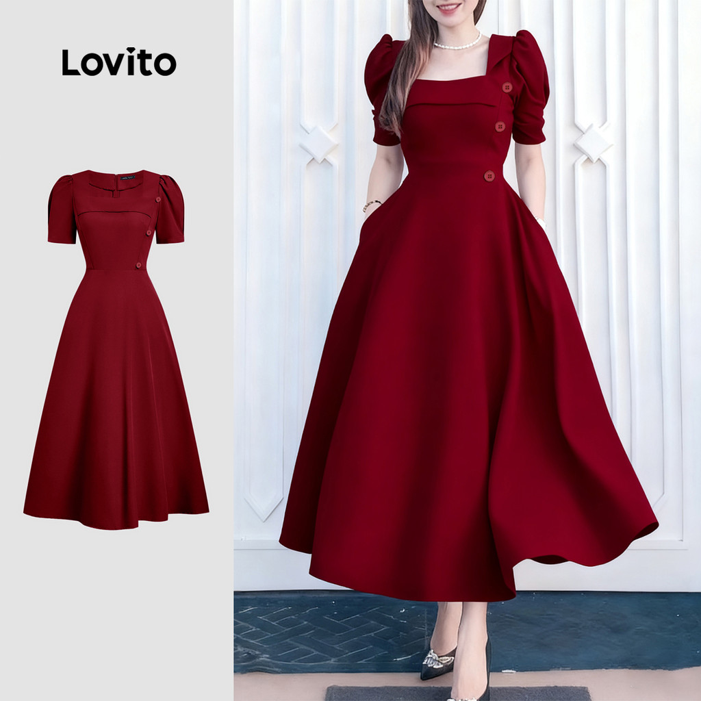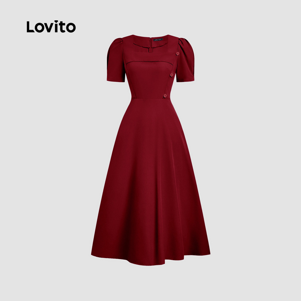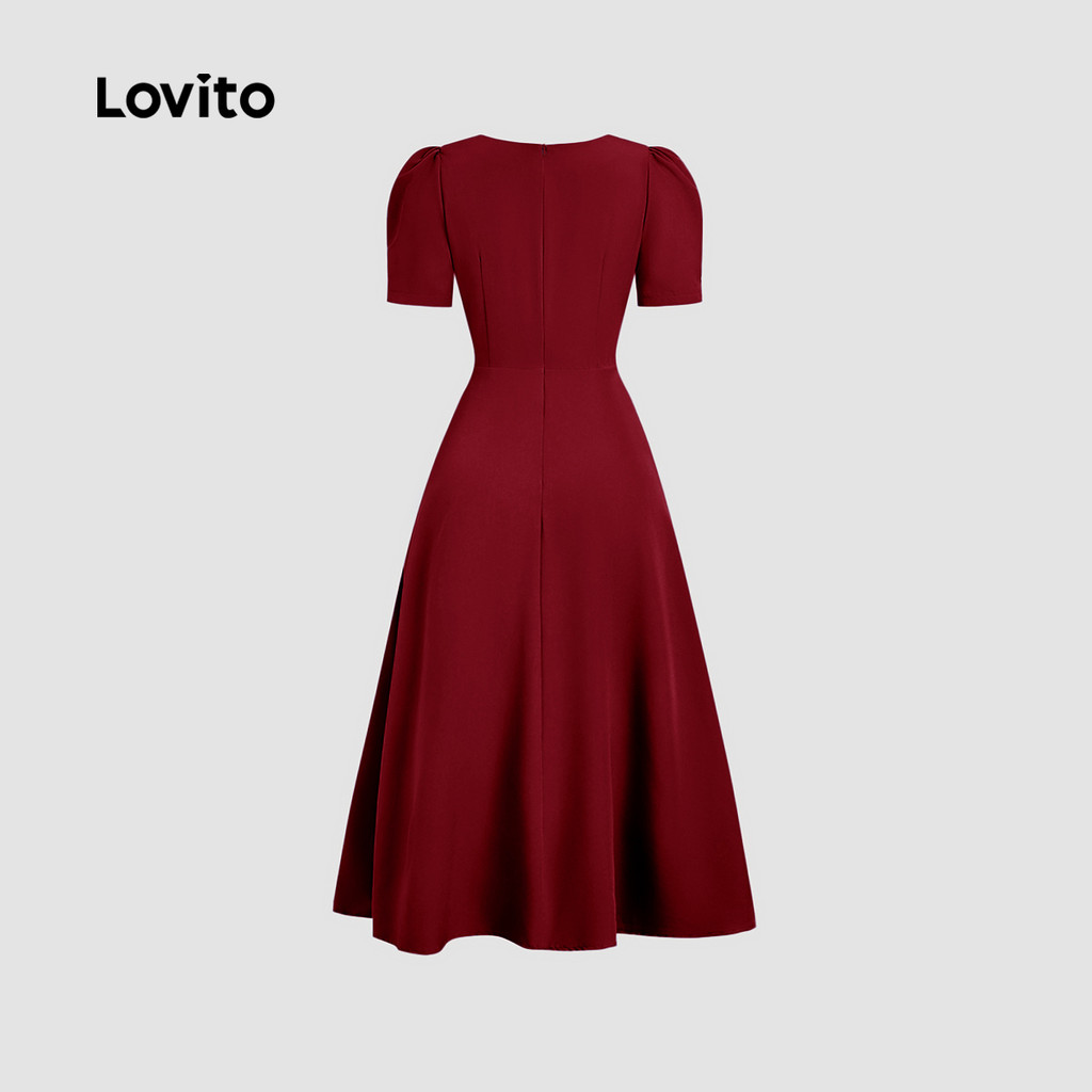 Lovito Vestido Elegante Assimétrico Confortável e Estiloso Primavera/verão Vestido Claret Para Mulheres L158ED1134