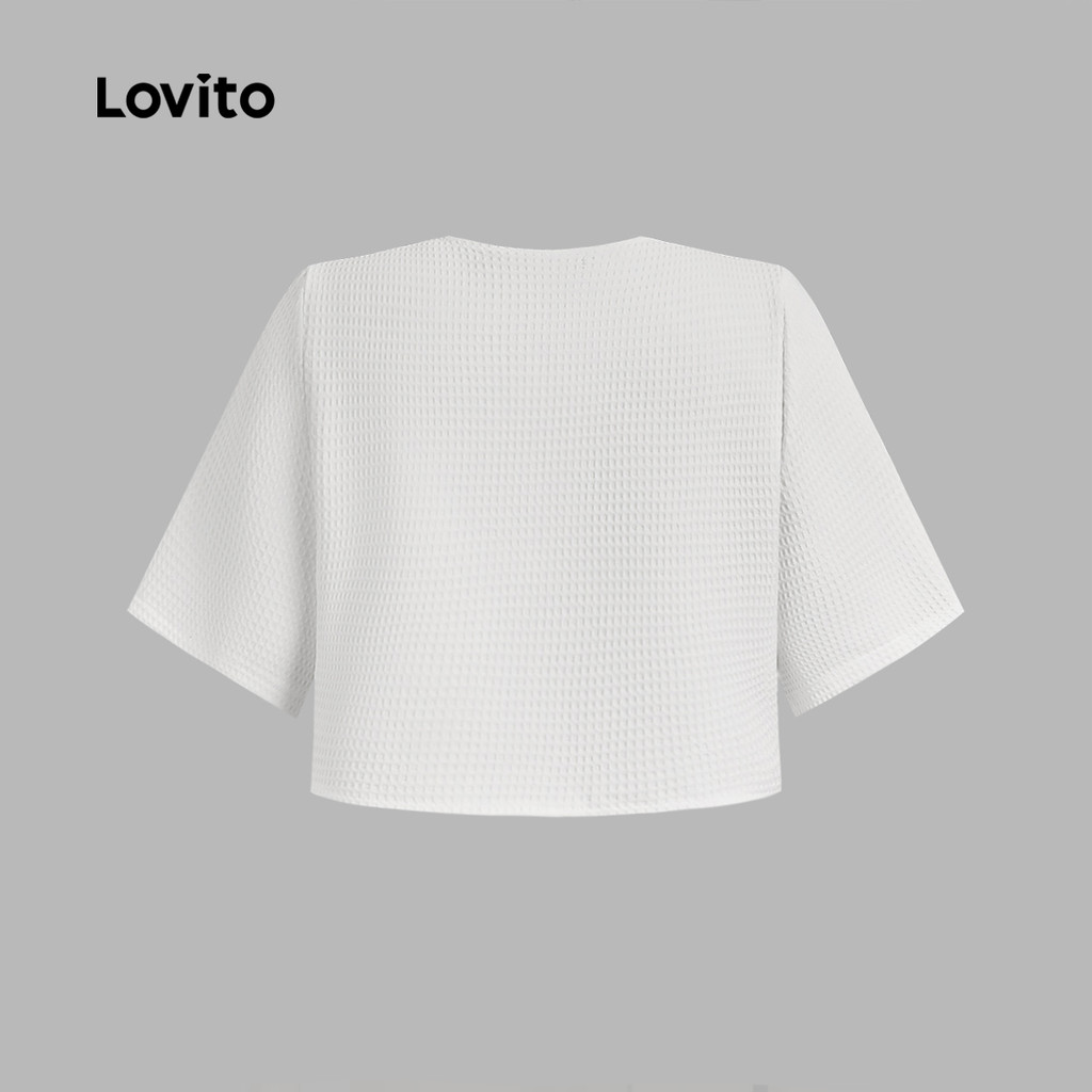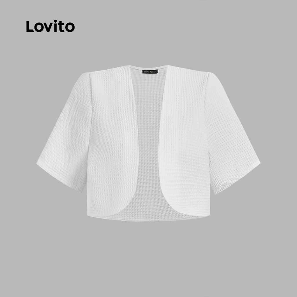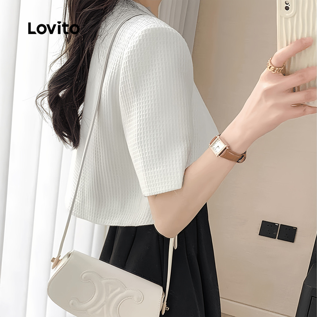Lovito Blazer Casual Simples Outono Inverno Feminino Branco L156AD182