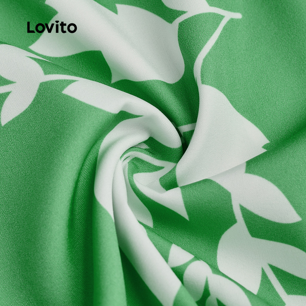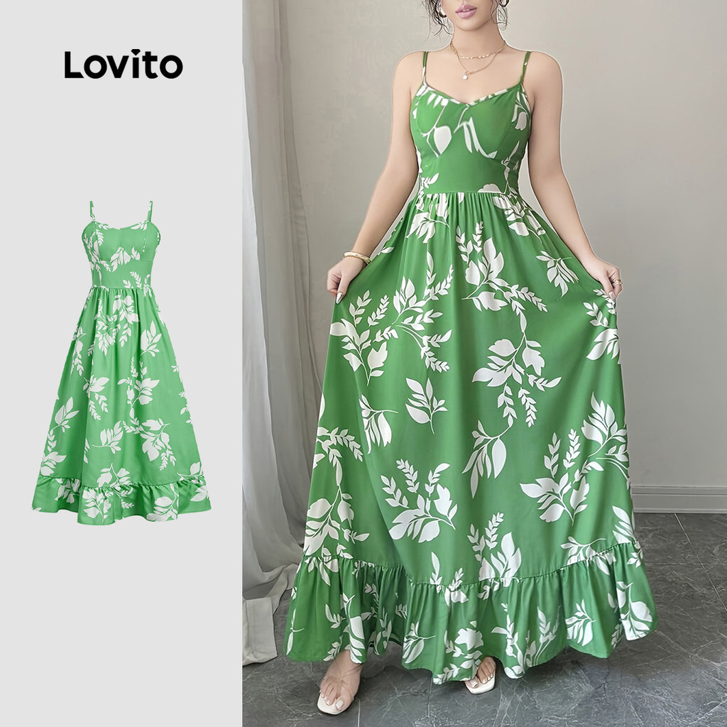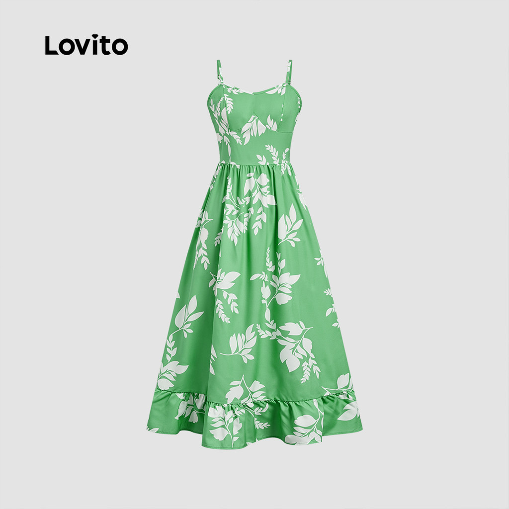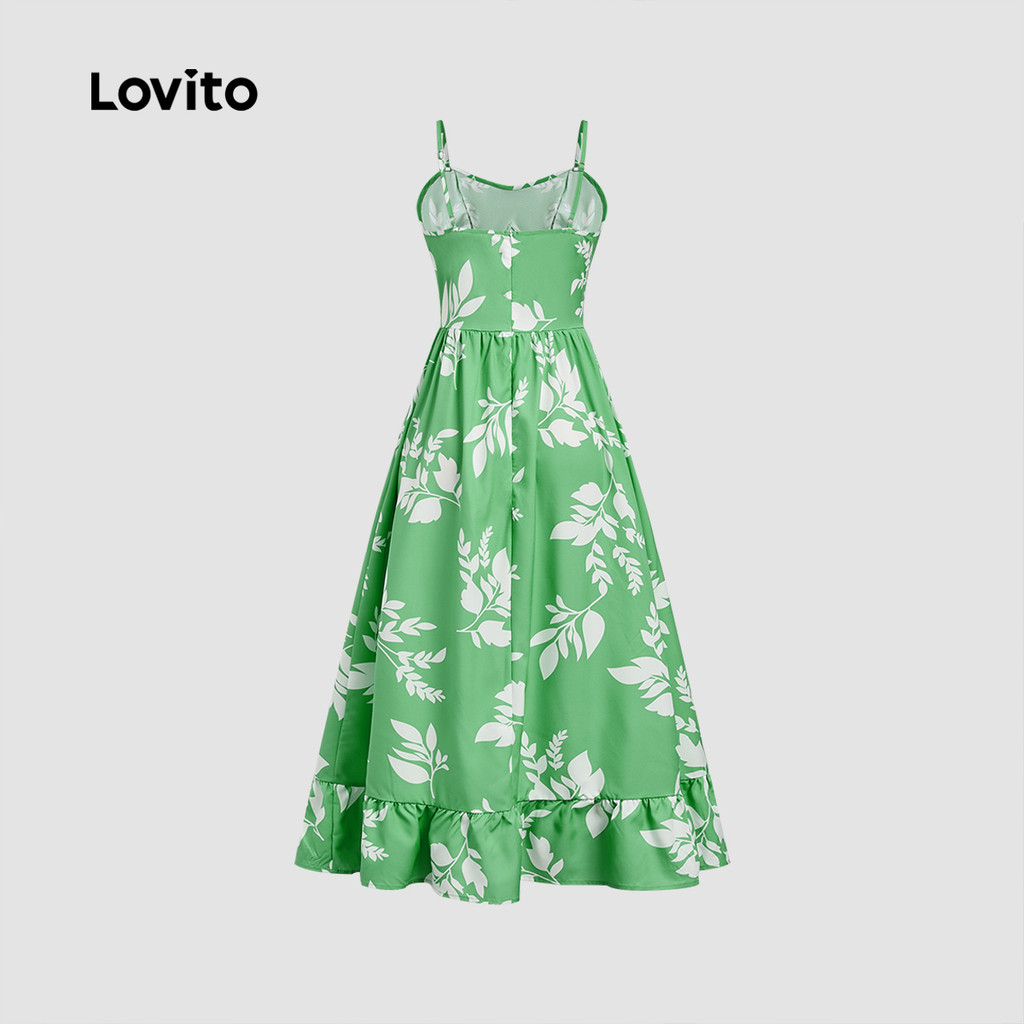 Lovito Vestido Boho Estilo Resort Zíper Babado Na Bainha Primavera/verão Verde para mulheres. LBL32222