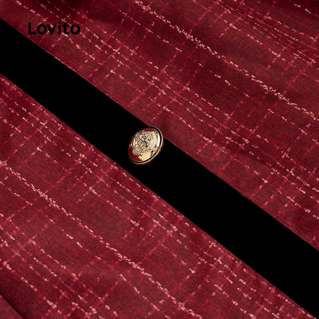 Lovito Vestido Feminino Casual Botões Contraste Primavera Verão Vinho LK2ED034