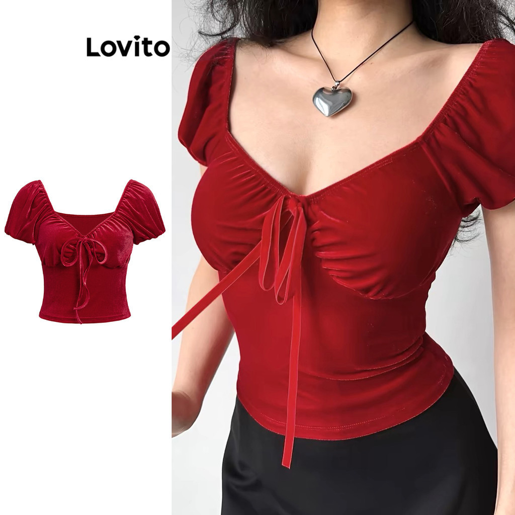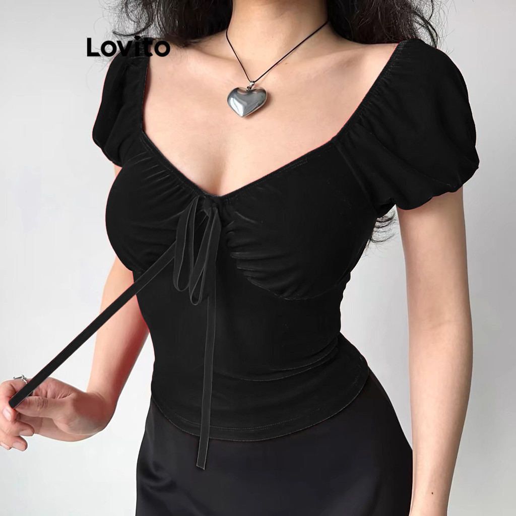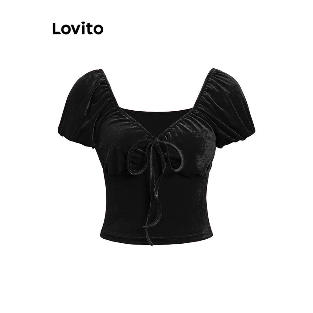 Lovito Blusa Casual Feminina Laço Liso Frente Plissada L87ED215
