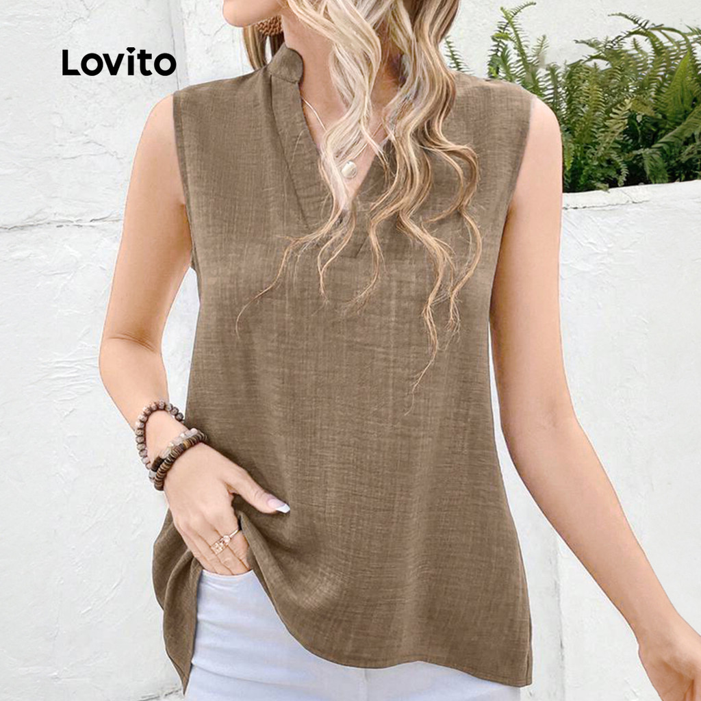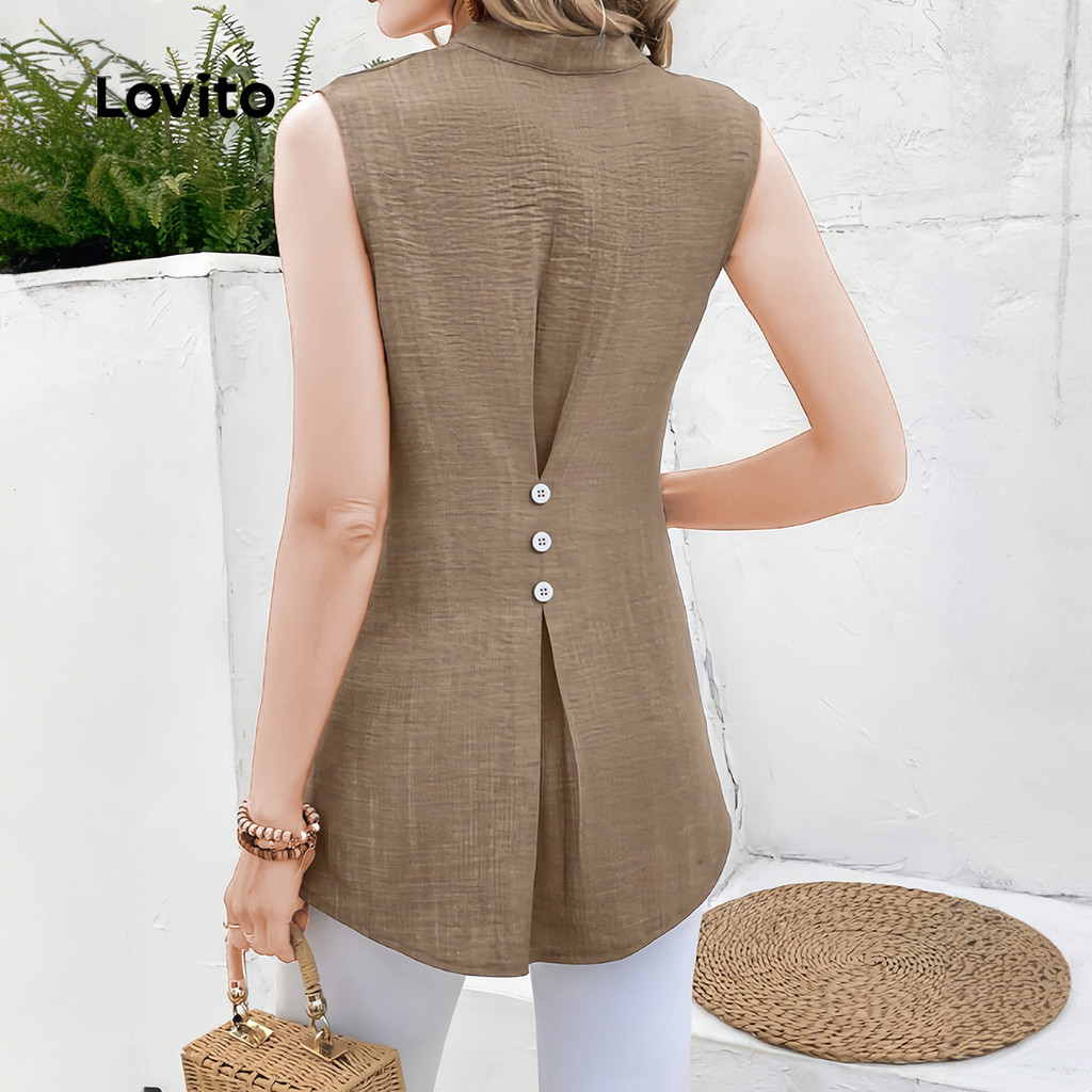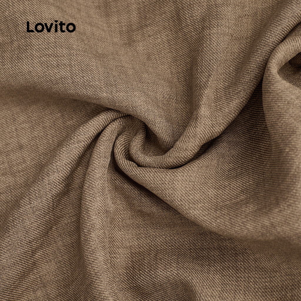 Lovito Blusa Casual Plicated com Botão Primavera/verão Caqui para Mulheres L154ED445