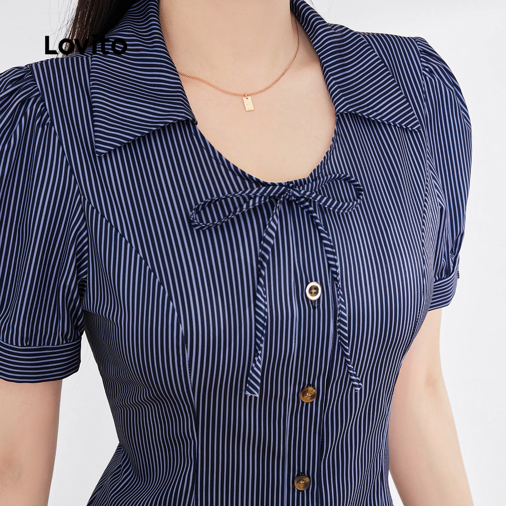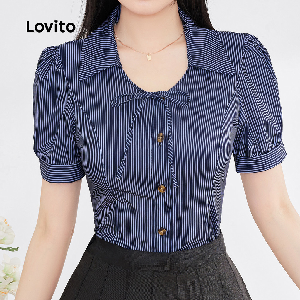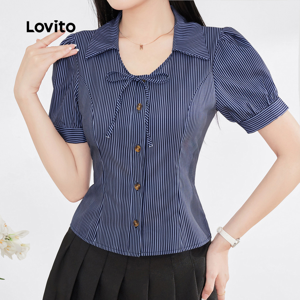Blusa Feminina Lovito Casual Perfeita Para Primavera Verão Com Botões Frontais Ideal Para Natal E Festas L165ED669