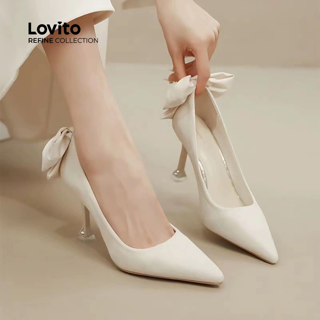 (Lovito Refine) Sapatos De Salto Alto Elegantes Com Laço Nas Costas Para Casamentos E Festas Femininas LR28E030