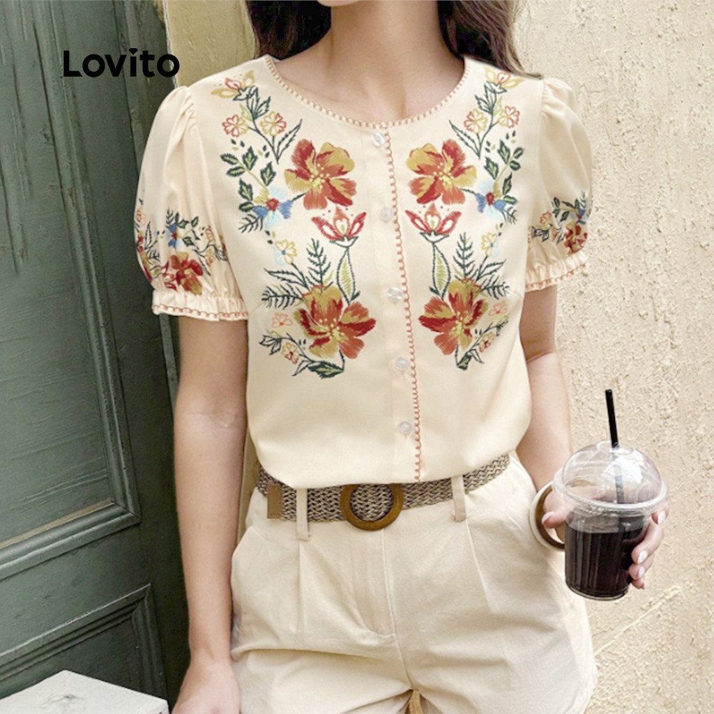 Lovito Blusa Boho Primavera/verão para Mulheres L157ED384