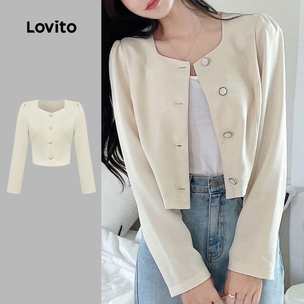 Lovito Casaco Feminino de Outono Inverno com Botões e Modelagem Estruturada em Off White L166AD413
