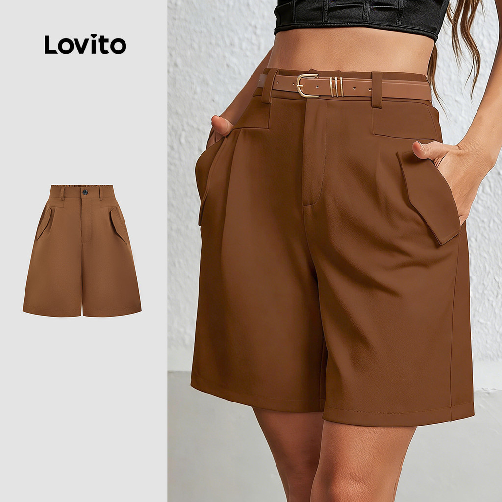 Lovito Shorts Casuais com Bolso e Botão Primavera/verão Shorts Cáqui para Mulheres LBL33077
