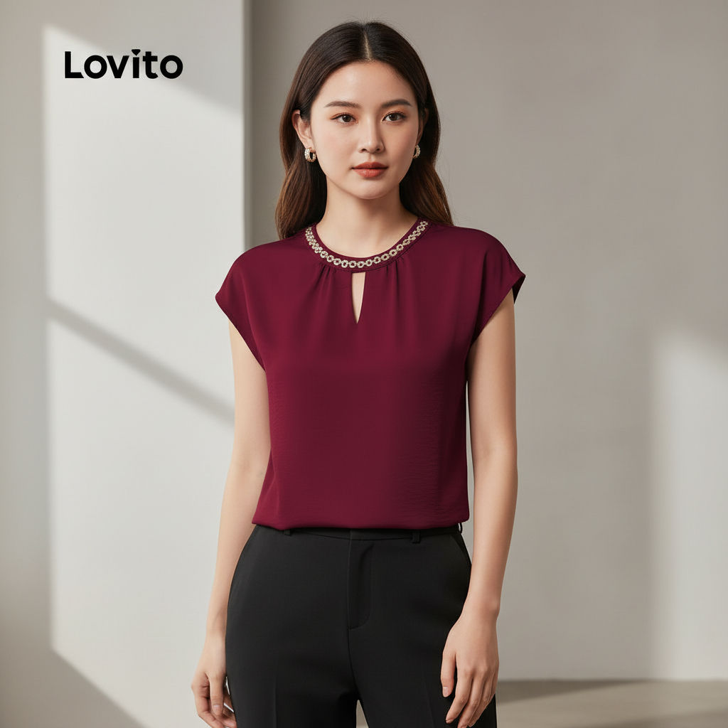 Blusa Feminina Lovito Recortes Vinho Casual Primavera Verão LK2ED830