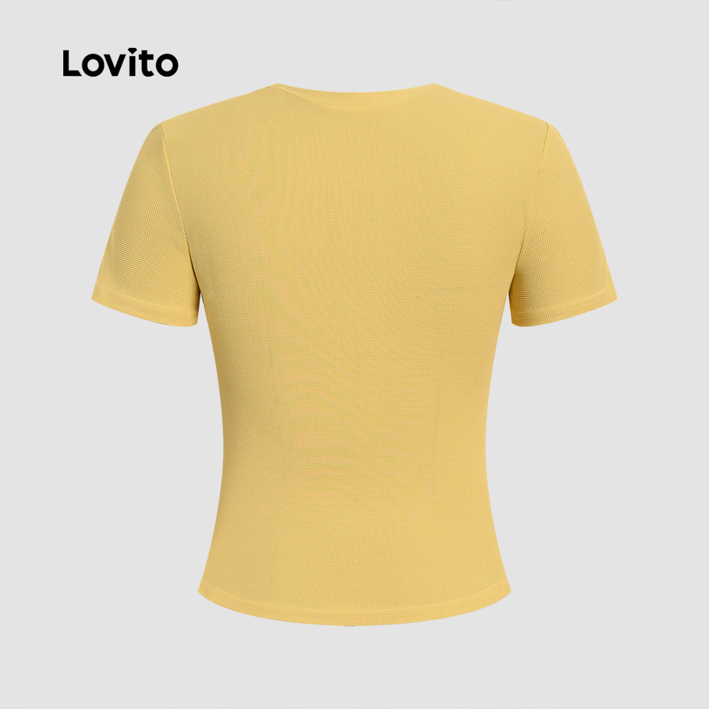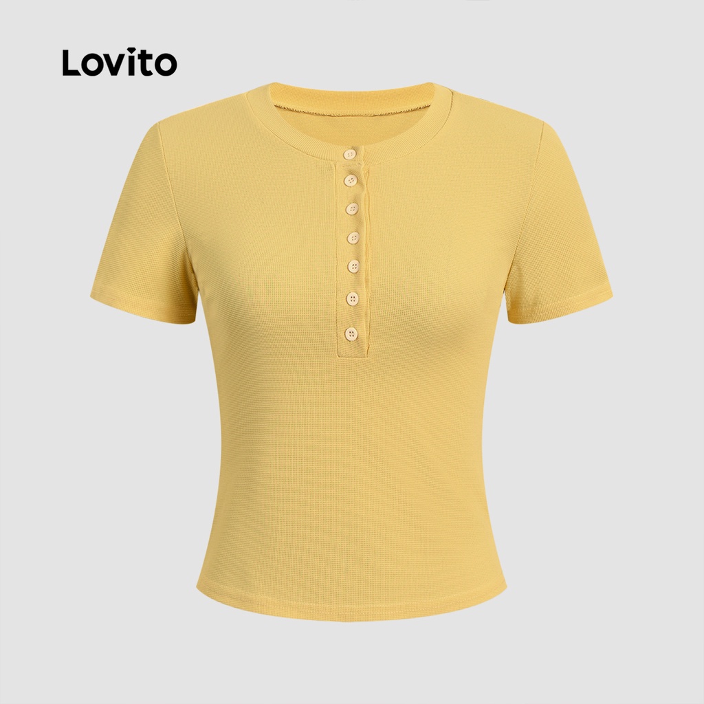 Lovito Camiseta Casual Clássica e Versátil Frente Abotoada Primavera/verão Amarela para Mulheres. L172LD333