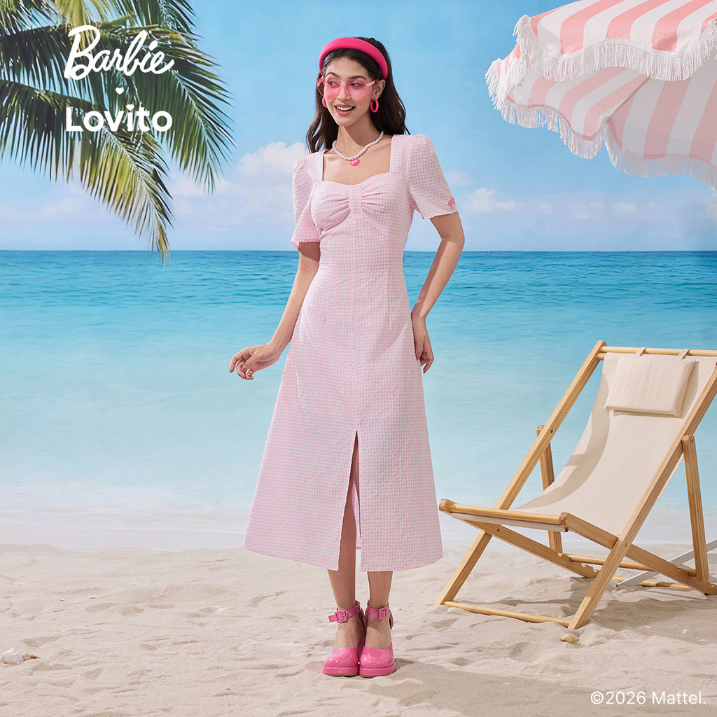 Barbie™ X Lovito Vestido Casual Colorblock Dividido Frente Primavera/verão para Mulheres LB1AD043